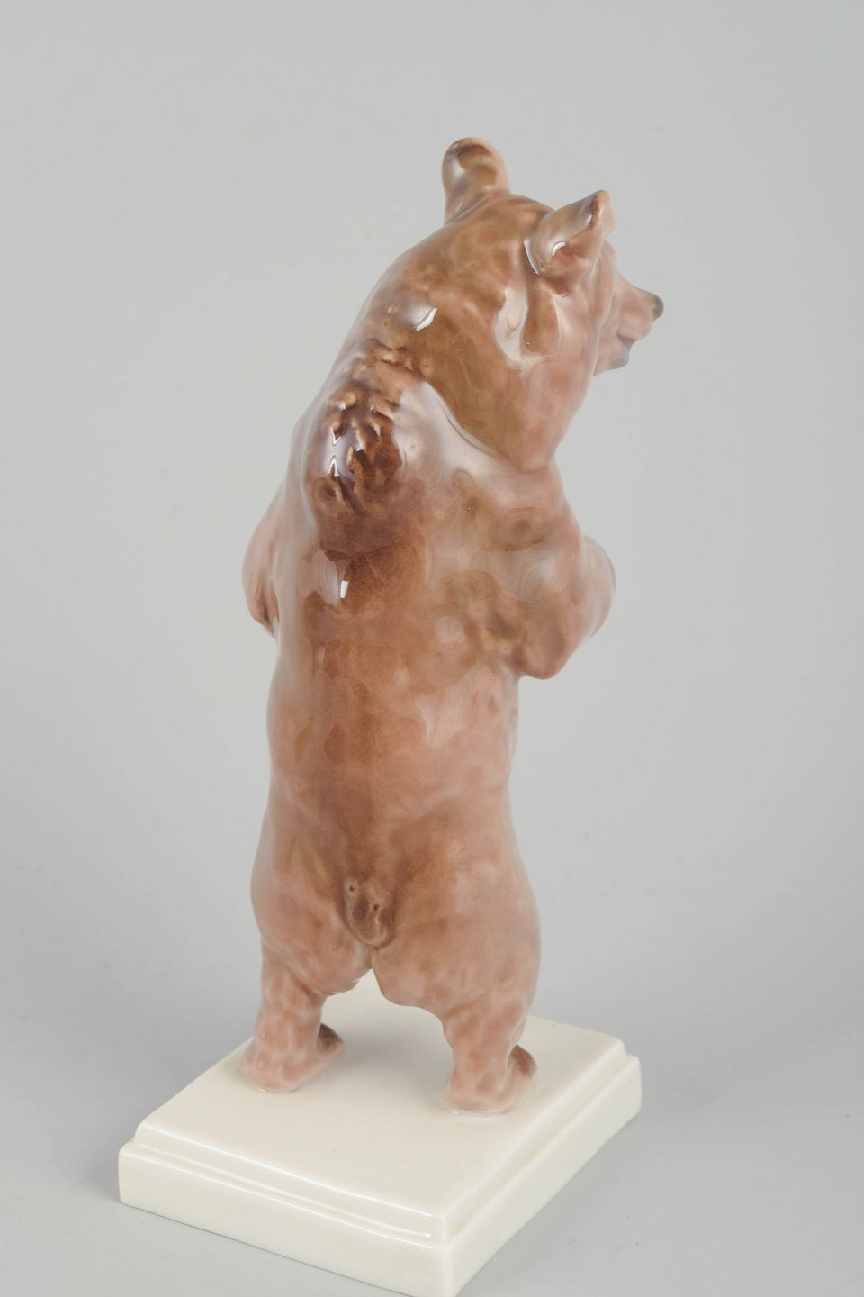 Porcelænsfigur af stående bjørn med naturlig positur, håndmalet i brunlige nuancer med fine detaljer og blank glasur. Monteret på rektangulær fod. 1. sortering.