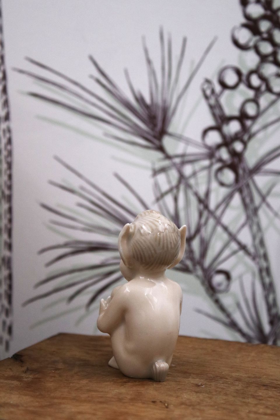 Sjælden porcelæns figur af Faun / Pan fra Royal Copenhagen , designet af Arno Malinowski...
