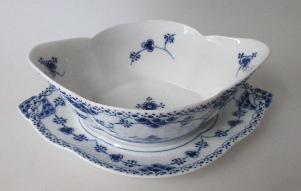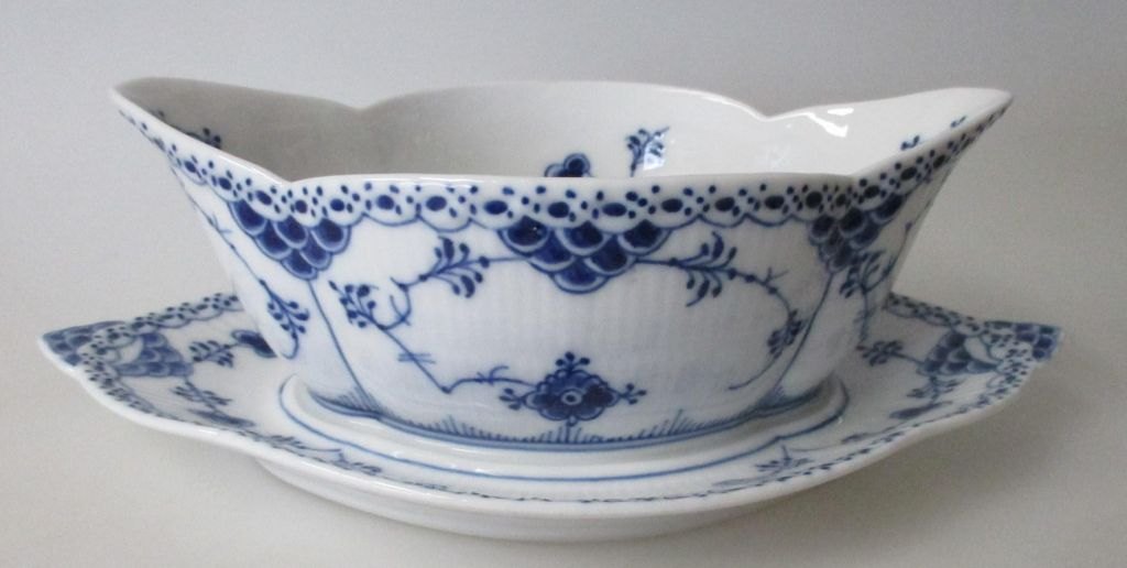 Royal Copenhagen, sovseskål, 587, musselmalet halv blonde, 20. årh., København, Danmark. H: 8,5 cm.L.: 25 cm.B.: 16,5 cm.