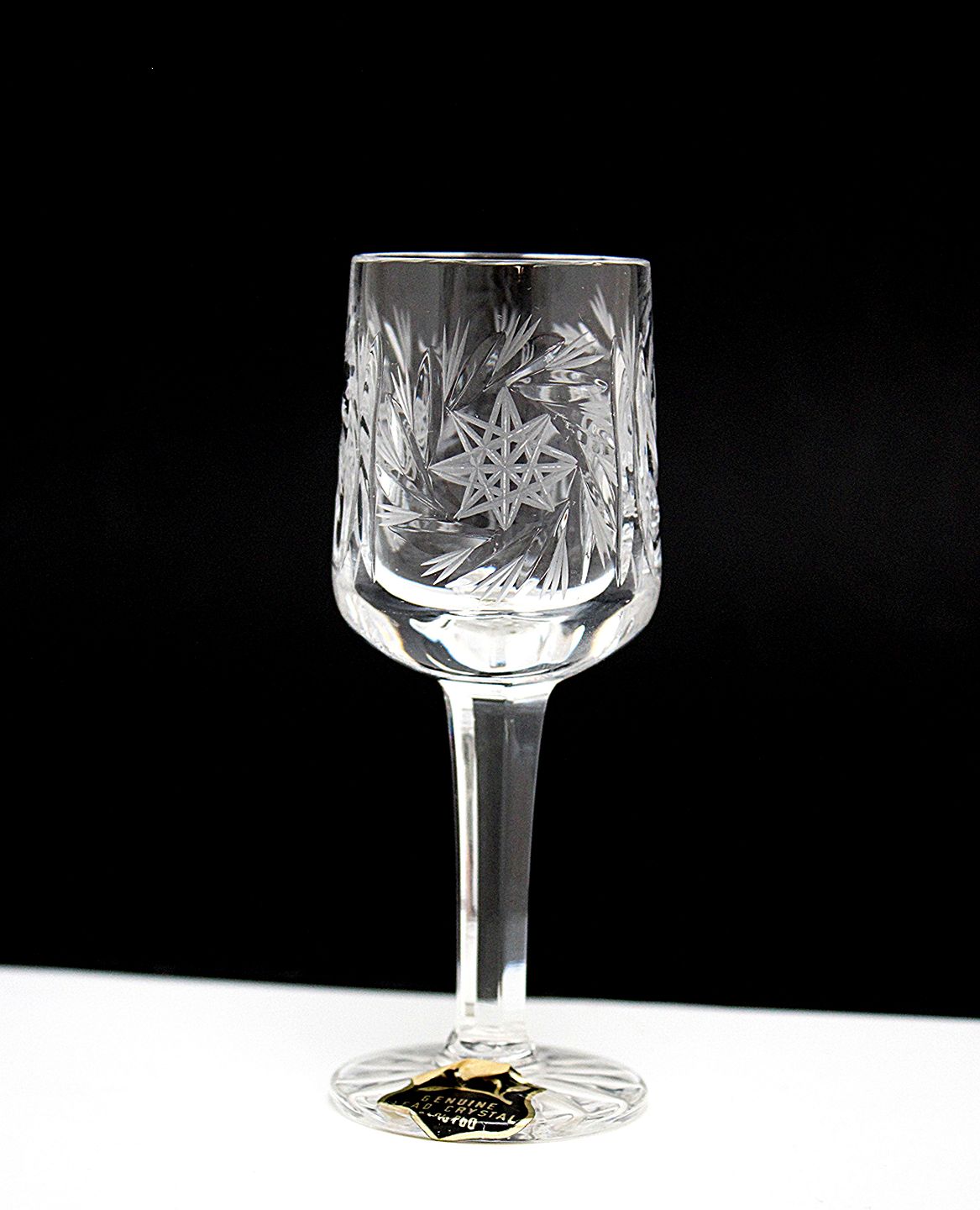 Lyngby glasværk, Granada, Snaps. Mundblæst og håndslebet 24 % Bøhmisk blykrystal med slibninger på kumme, slebet stilk og stjerneslebet fod. Importeret fra Tjekkiet i 1970'erne og solgt via Lyngby glasværk.
