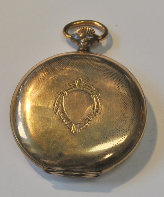 Forgyldt schweizisk lommeur, 19. årh. Urværk: Cortebert; no. 1217. Emaljeskive med arabertal. Med timer, minutter og sekunder. Urkasse med dekoration. Dia.: 5 cm. Indendig betegnet: Geneva Watch case.