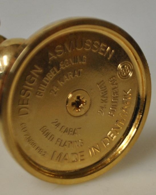 Asmussen dråbestage, 20. årh. Middelfart. Danmark. Forgyldt messing. Stemplet. Højde.: 12 cm. Med to dråber.