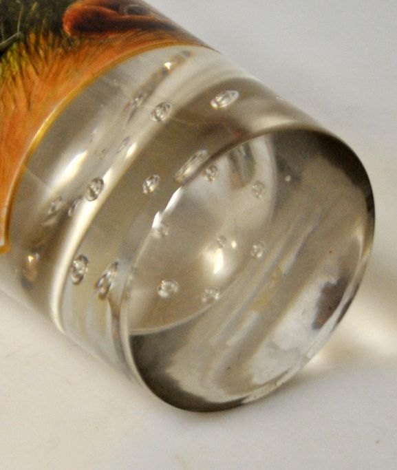 Tysk drikkeglas, 19. årh. Med jægermotiv i overteknik med emalje. Med forgyldninger. H.: 17,5 cm. Indvendig i fod med luftbobler.