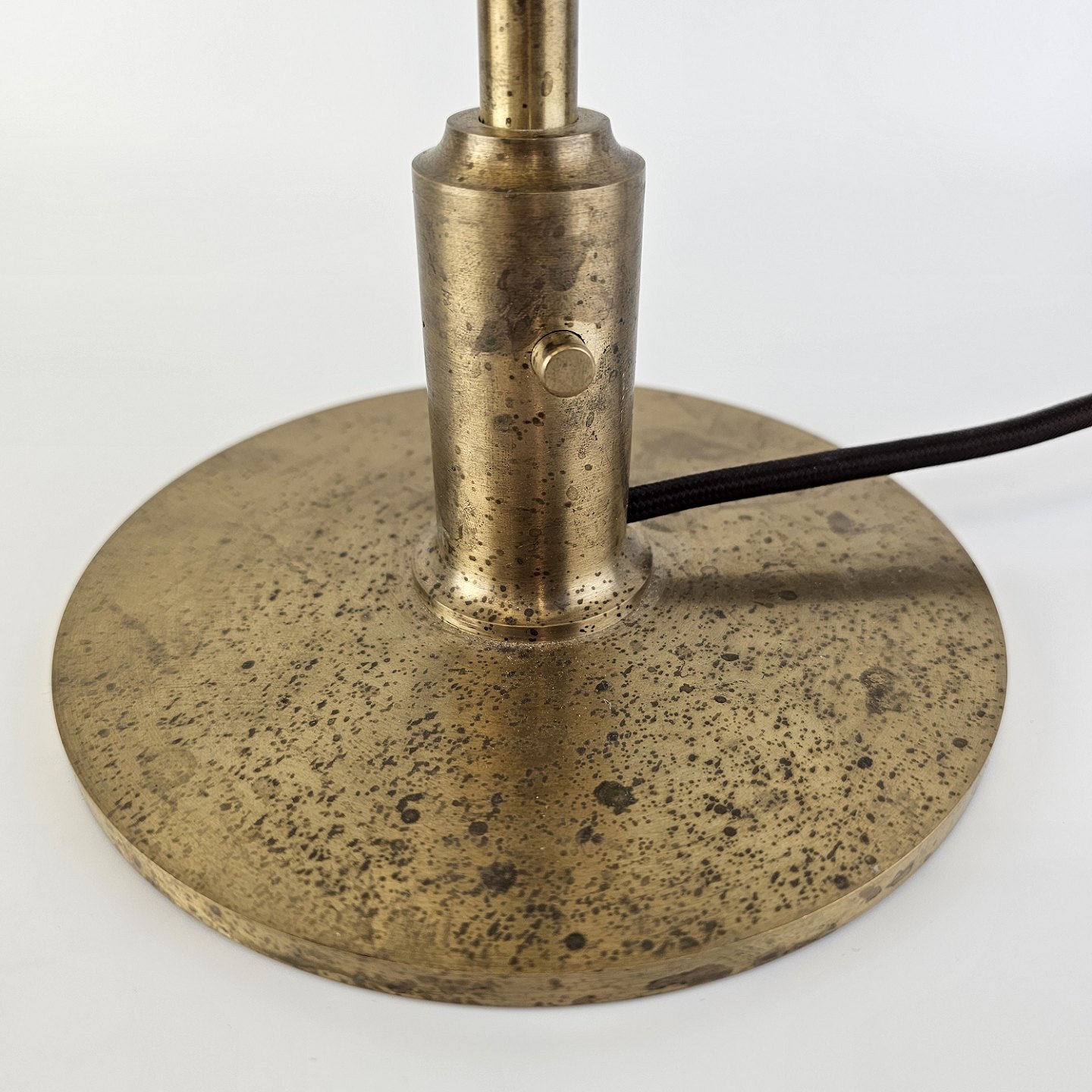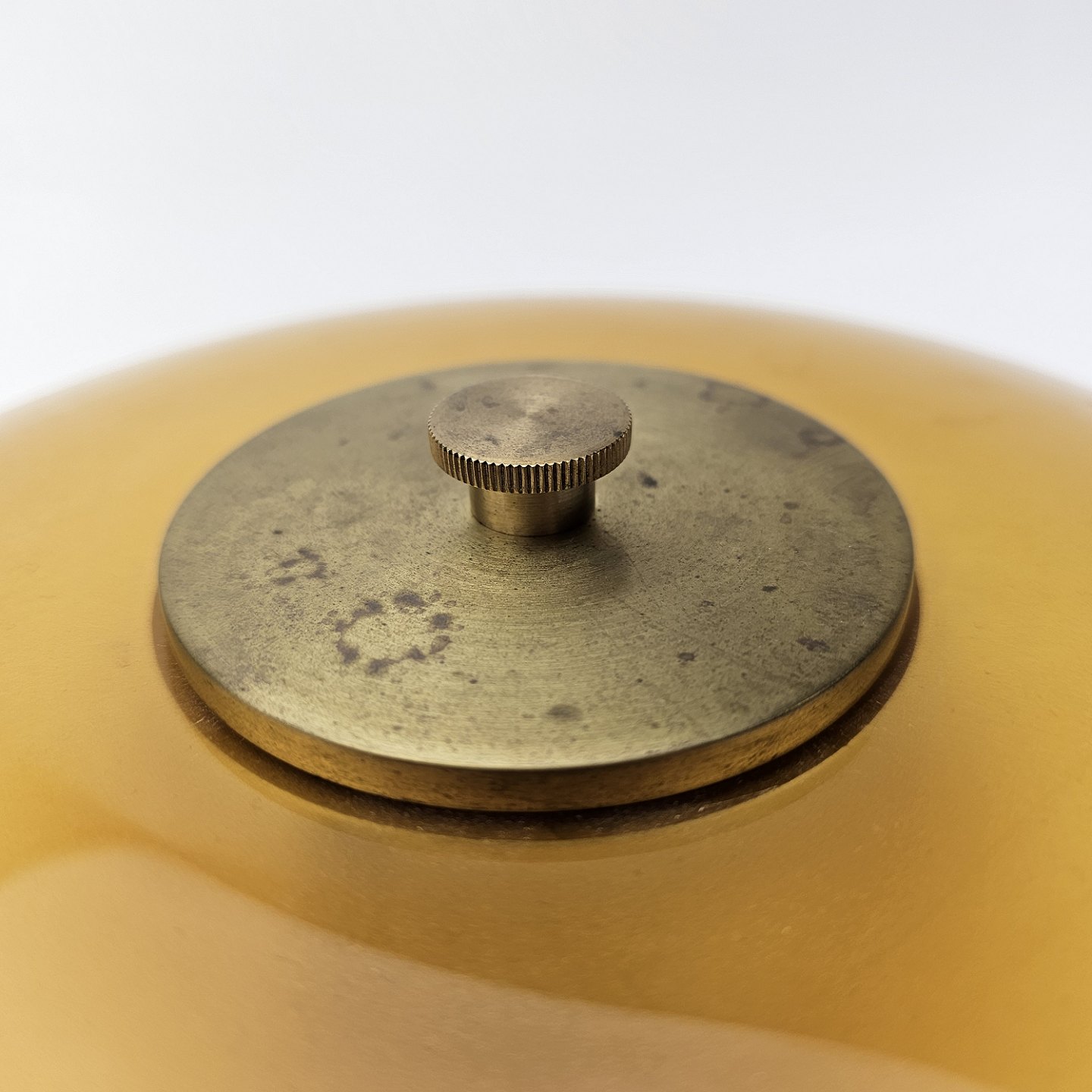 Bordlampe med skærm af mundblæst ravfarvet etlagsglas og fod af strøgslebet messing Limited edition udført efteråret 2018