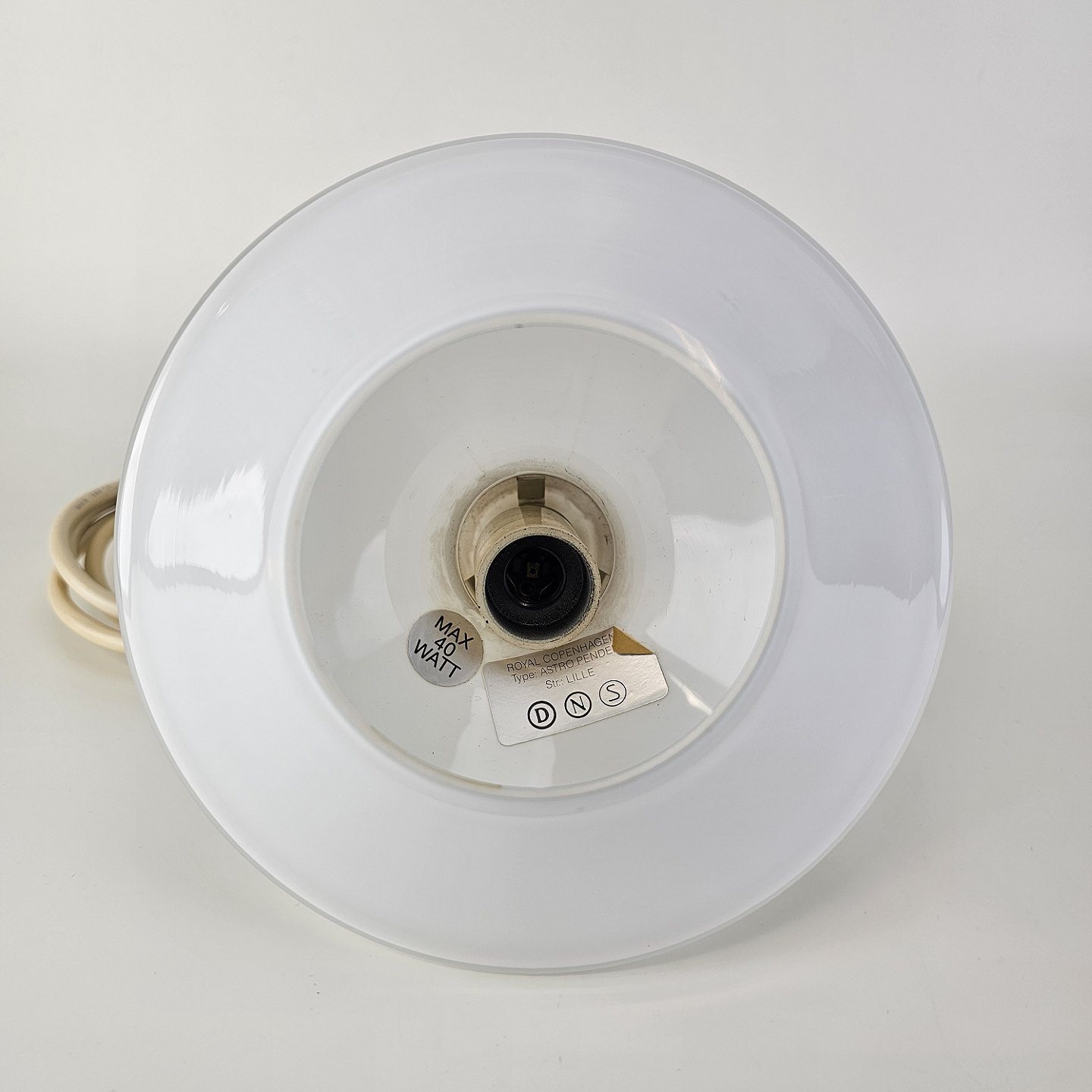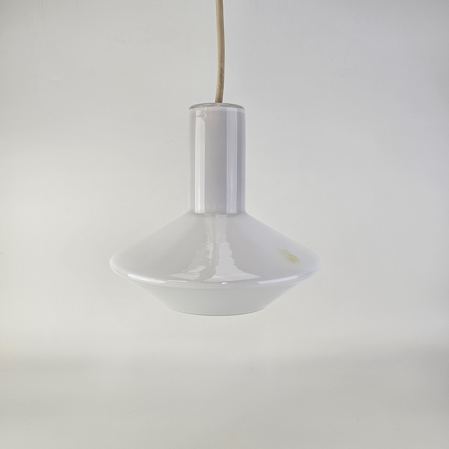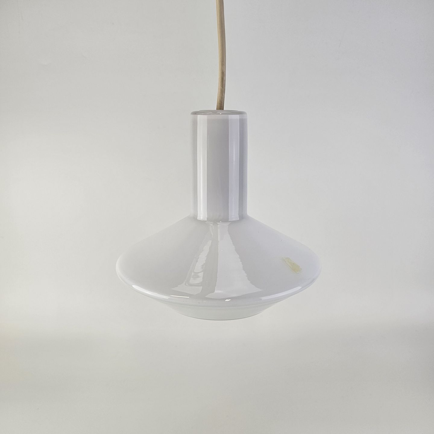 Pendel i mundblæst hvidt glas