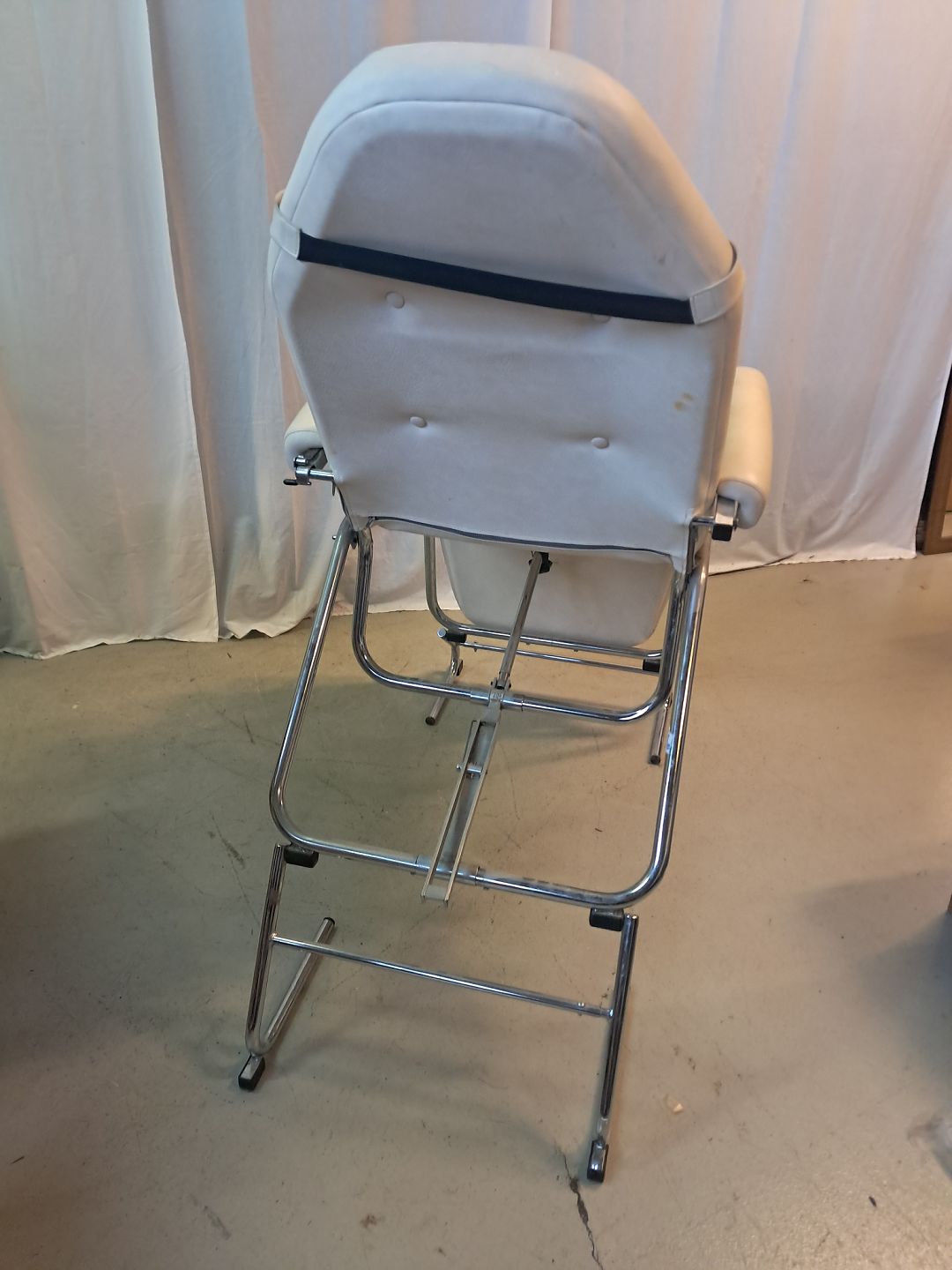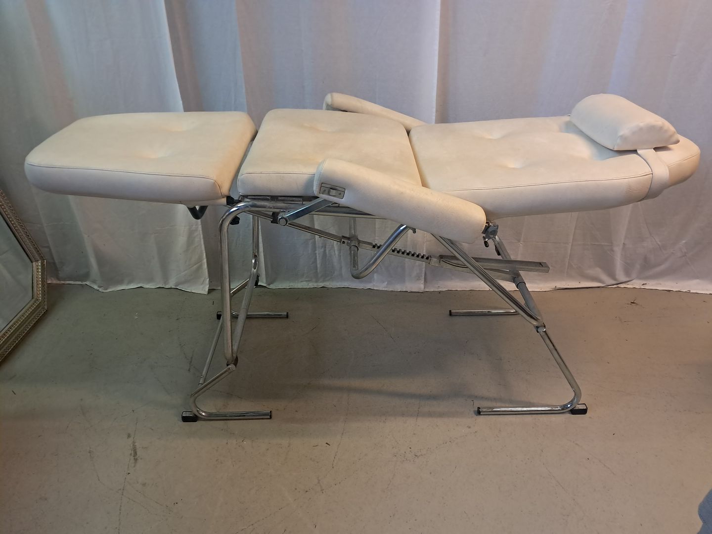 Massagse-stol og briks i metal og kunstlæder, fra 1990erne.