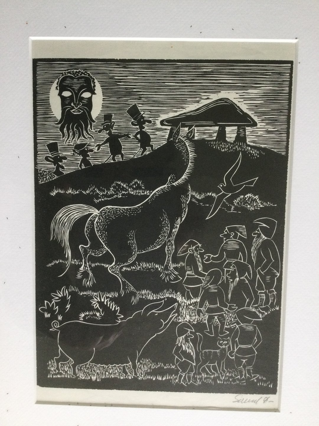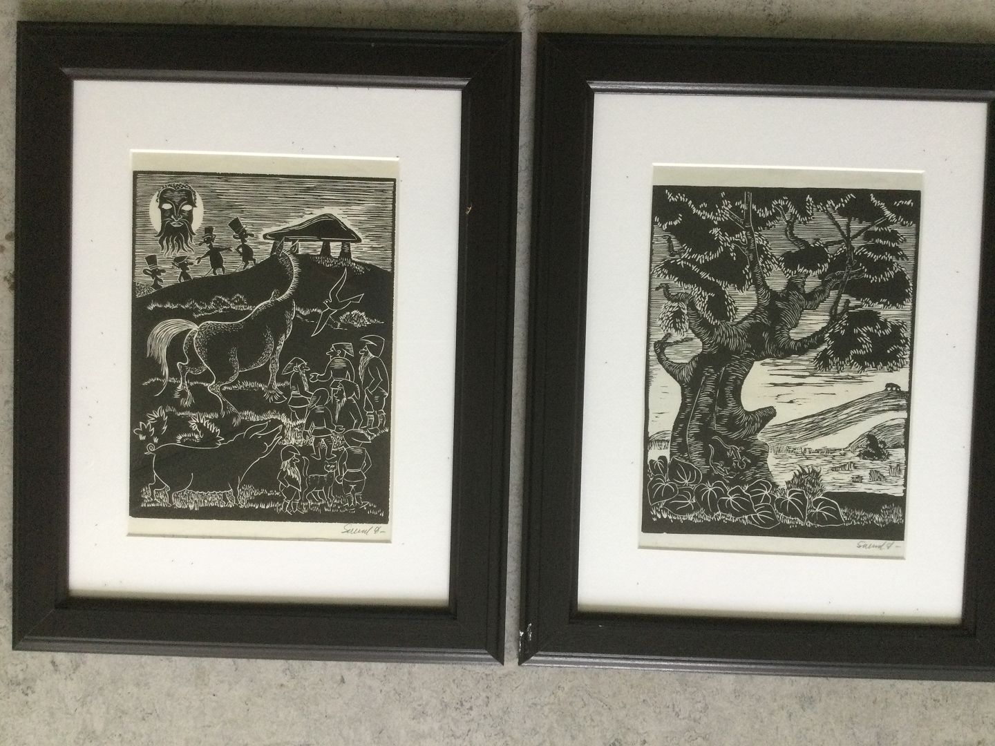 2 linoleumssnit af Svend P. Jørensen 1973.