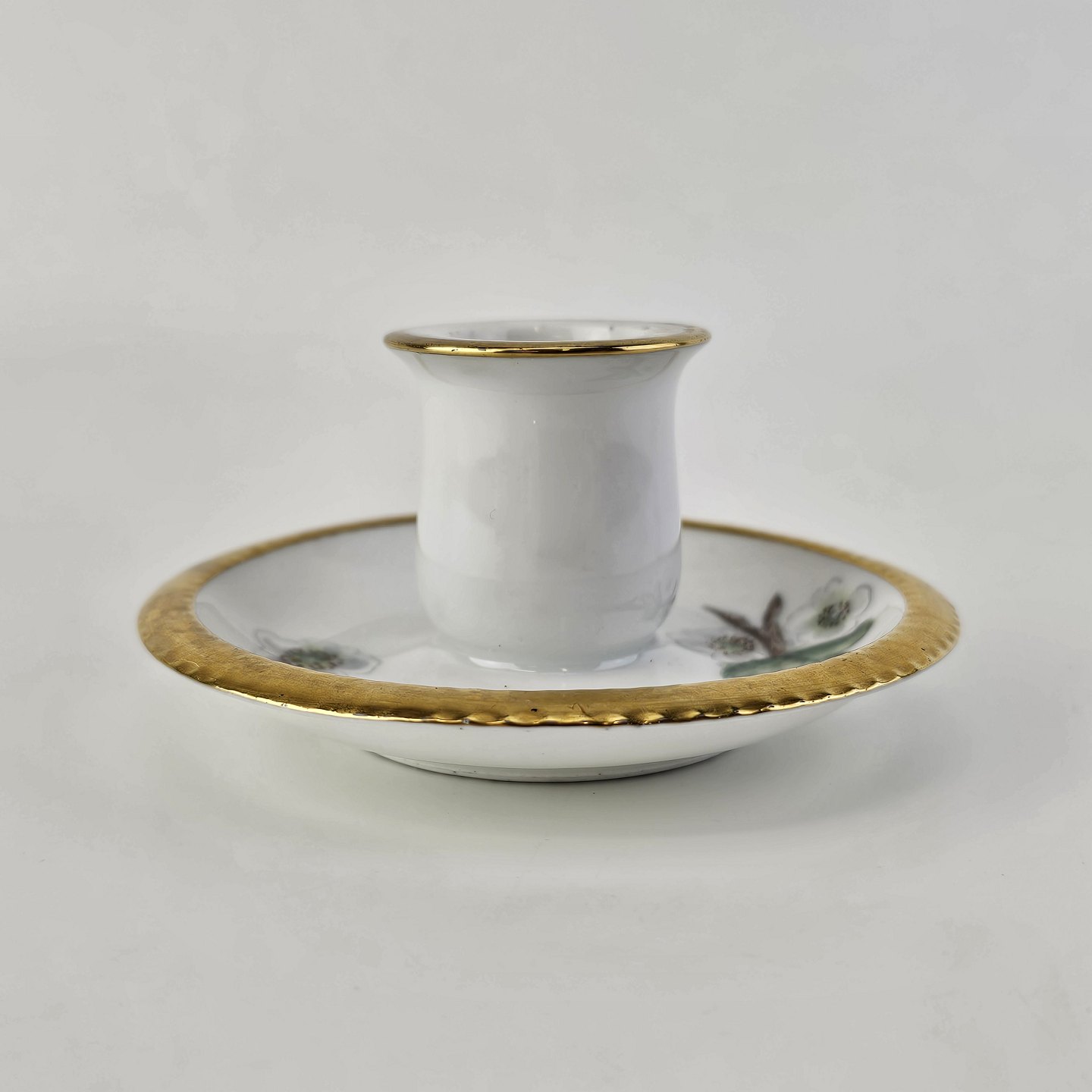 Eremitage er porcelæn dekoreret med hvidtjørn og guldkant