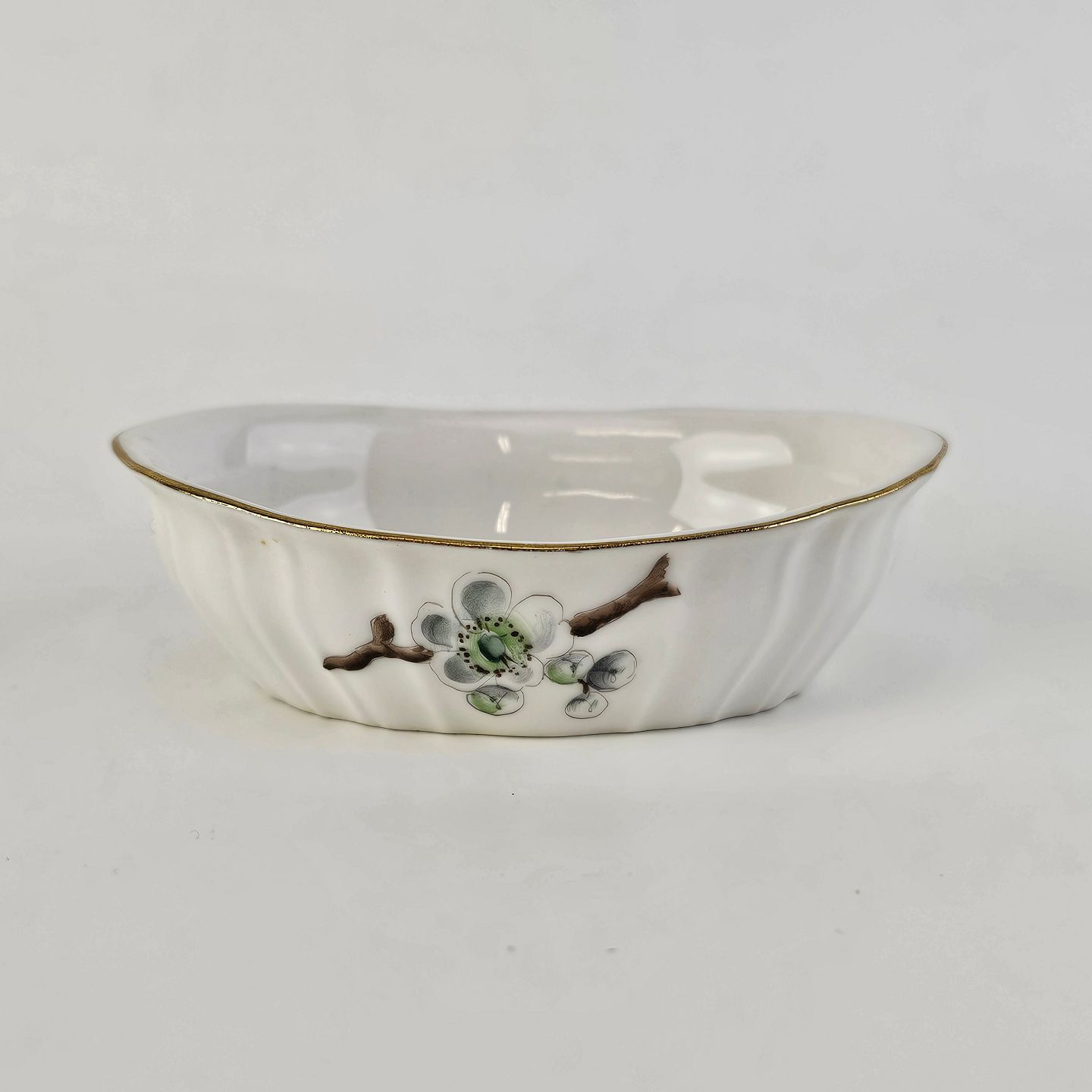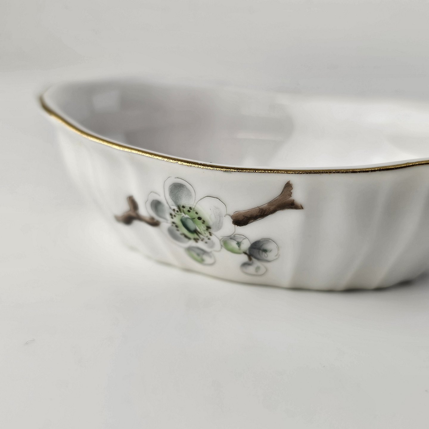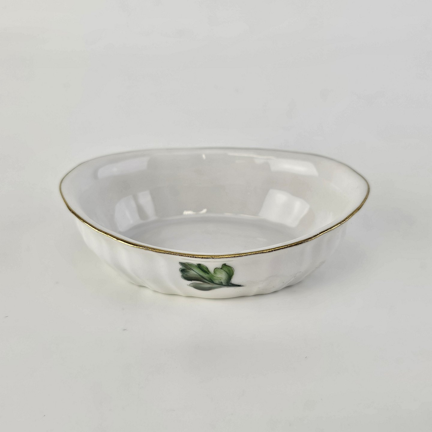 Eremitage er porcelæn dekoreret med hvidtjørn og guldkant