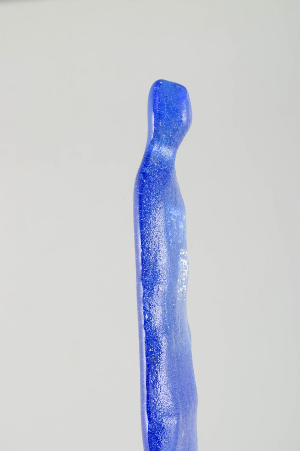 Håndformet figur udført i intenst koboltblåt glas med metallisk skær og minimalistisk formgivning. Et skulpturelt værk, der forener menneskets silhuet med Ekegrens karakteristiske eksperimenterende udtryk og farvedybde.