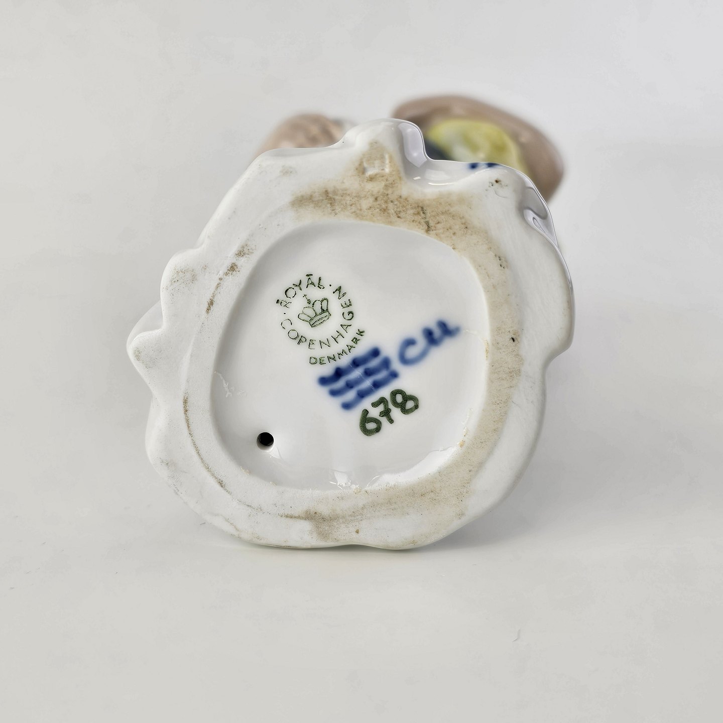 Figur i kongeligt porcelæn med form af en lille pige i en blå badedragt med et håndklæde og en badeand