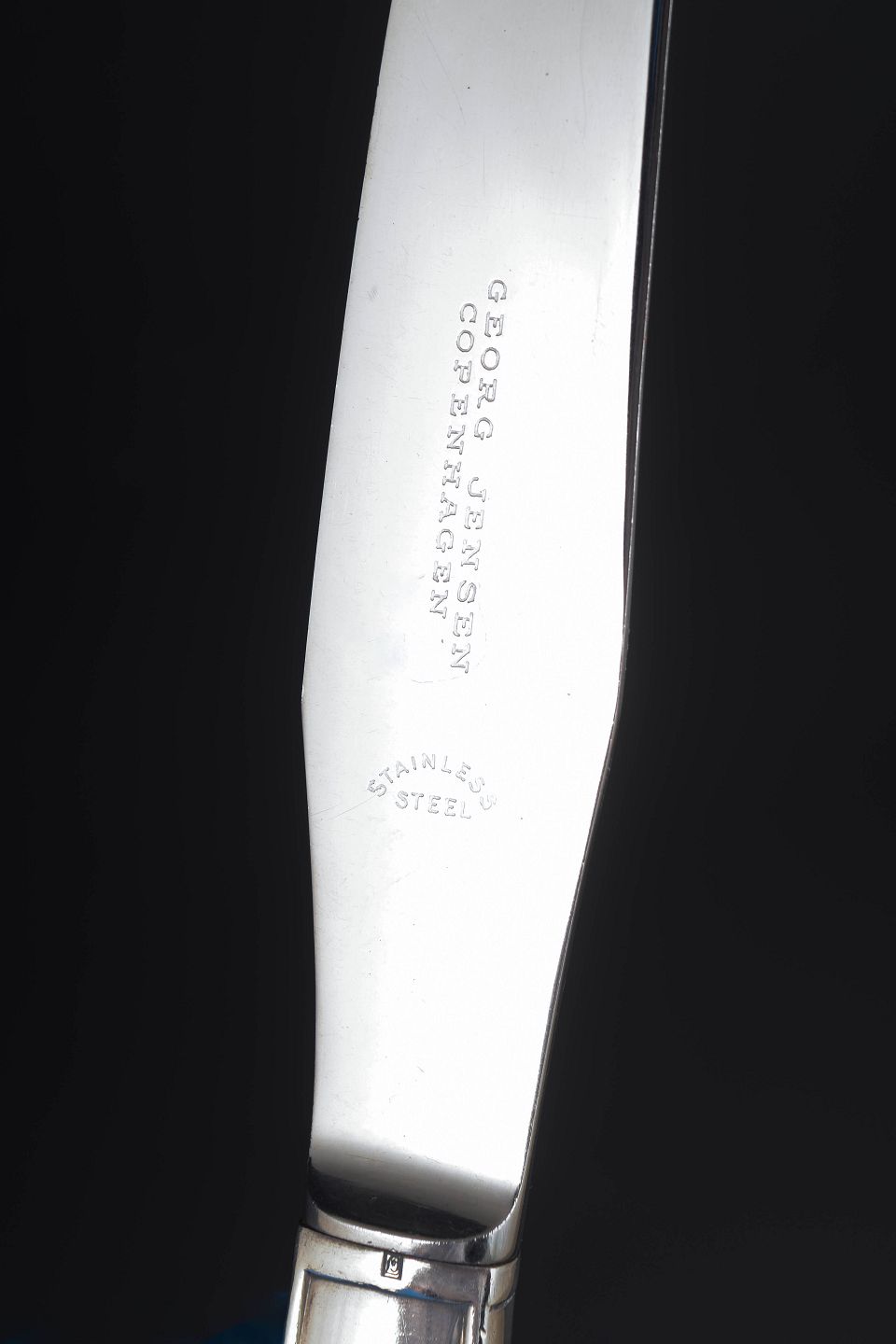 “Liljekonval”-mønsteret blev introduceret i 1913 og er et af Georg Jensens tidlige bestikdesigns. Mønstret, inspireret af art nouveau-stilens organiske former, forener klassisk elegance med funktionel enkelhed. Serien blev fremstillet både i helsølv og i kombinerede udgaver med stålklinger, som dette sæt, og regnes blandt de mest raffinerede og tidløse designs fra perioden mellem art nouveau og art deco.