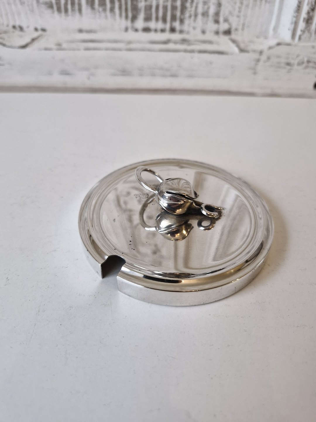 Forsølvet låg til marmeladekrukke dekoreret med rosenknop