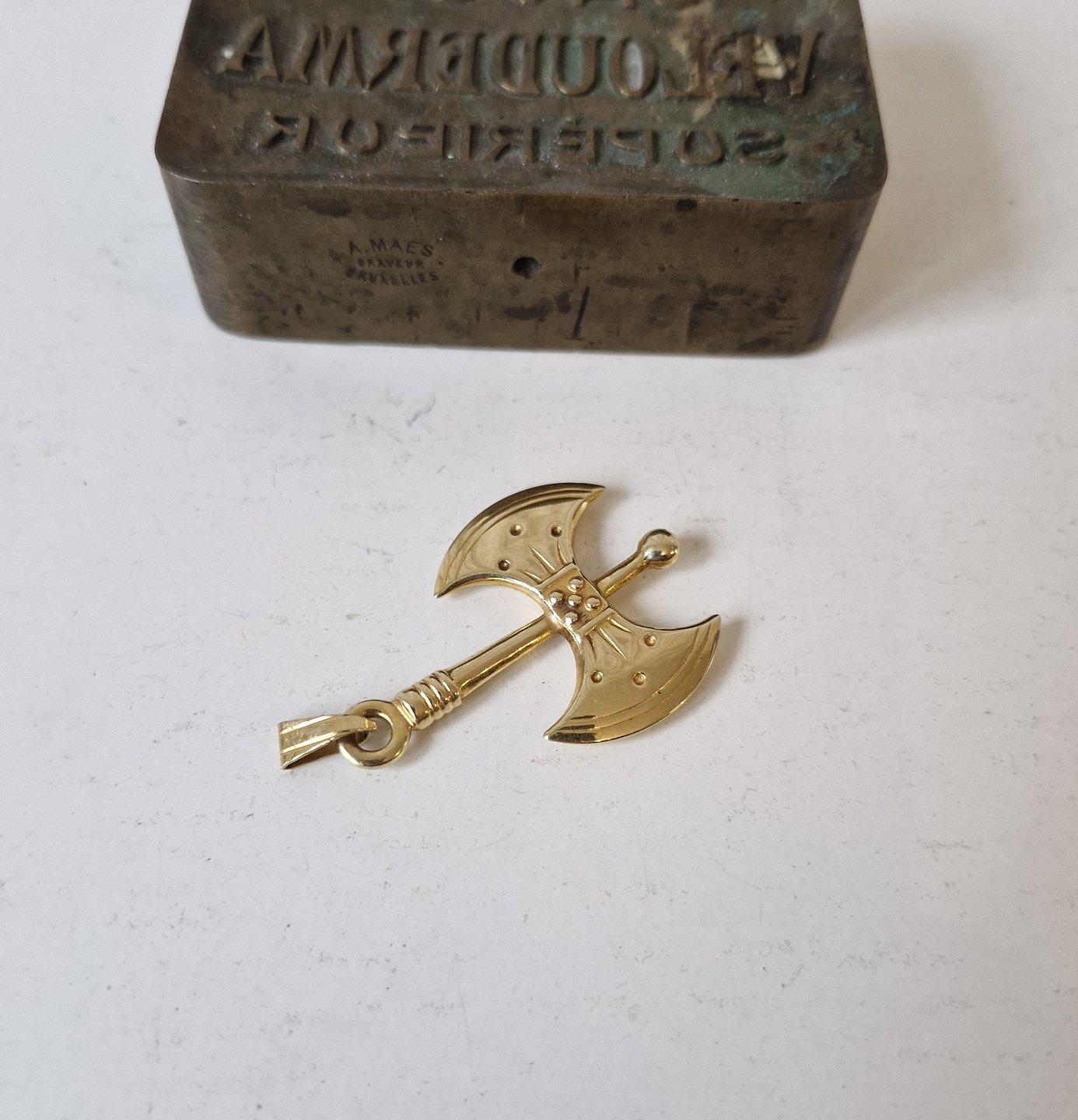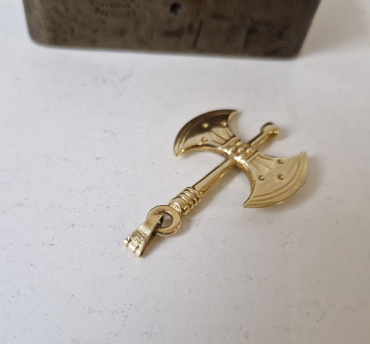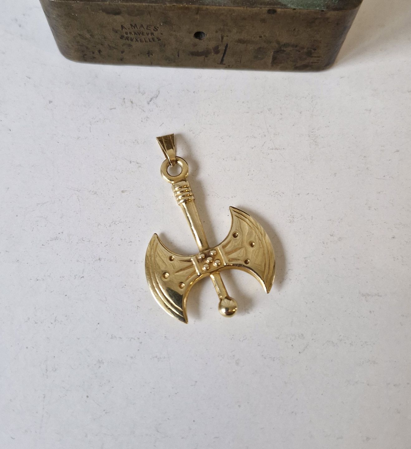 Græsk vedhæng i 14kt guld, udført som dobbeltøkse - Labrys.