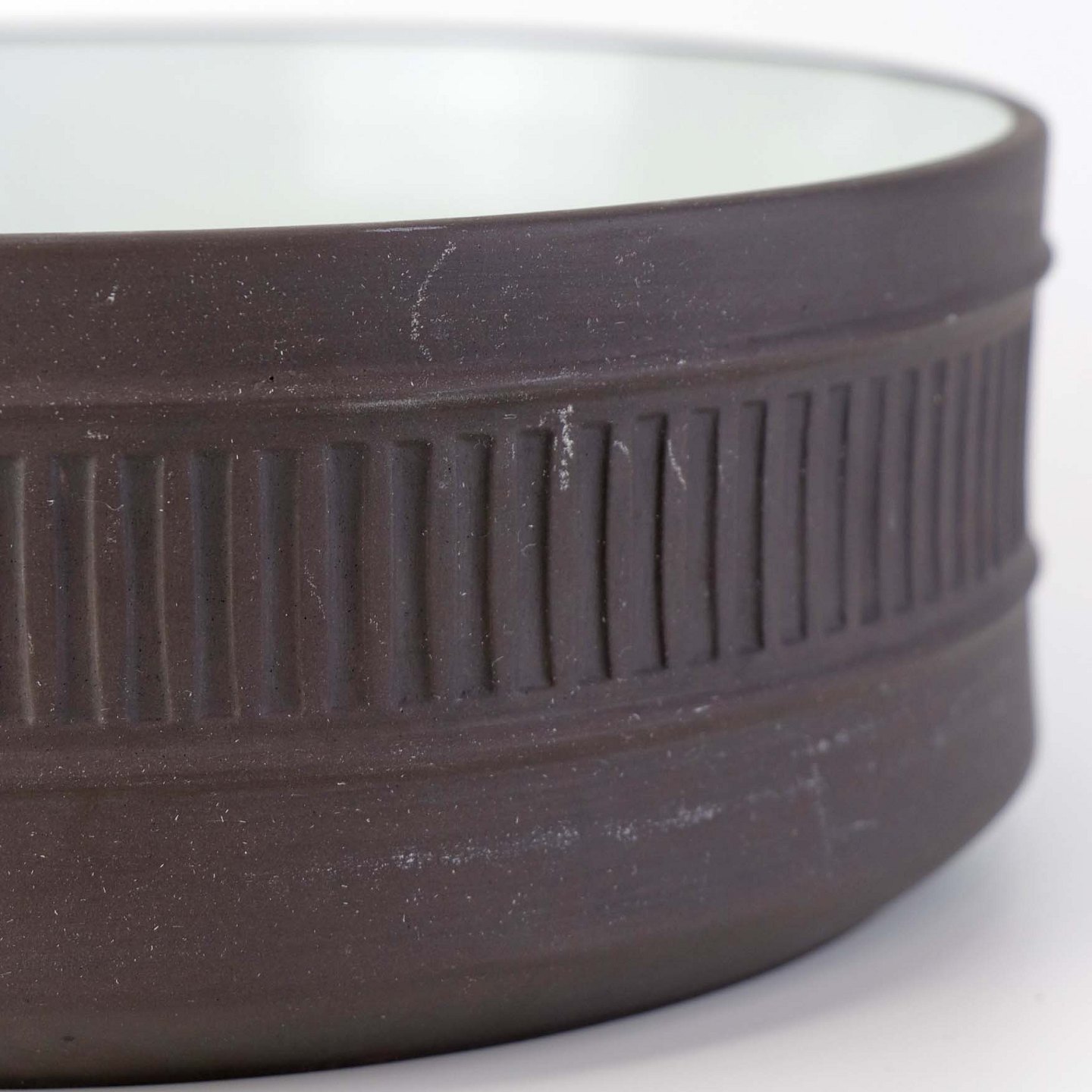 Stellet Flamestone har hvidt glasur indvendigt og ydersiden er i rå uglaseret stentøj