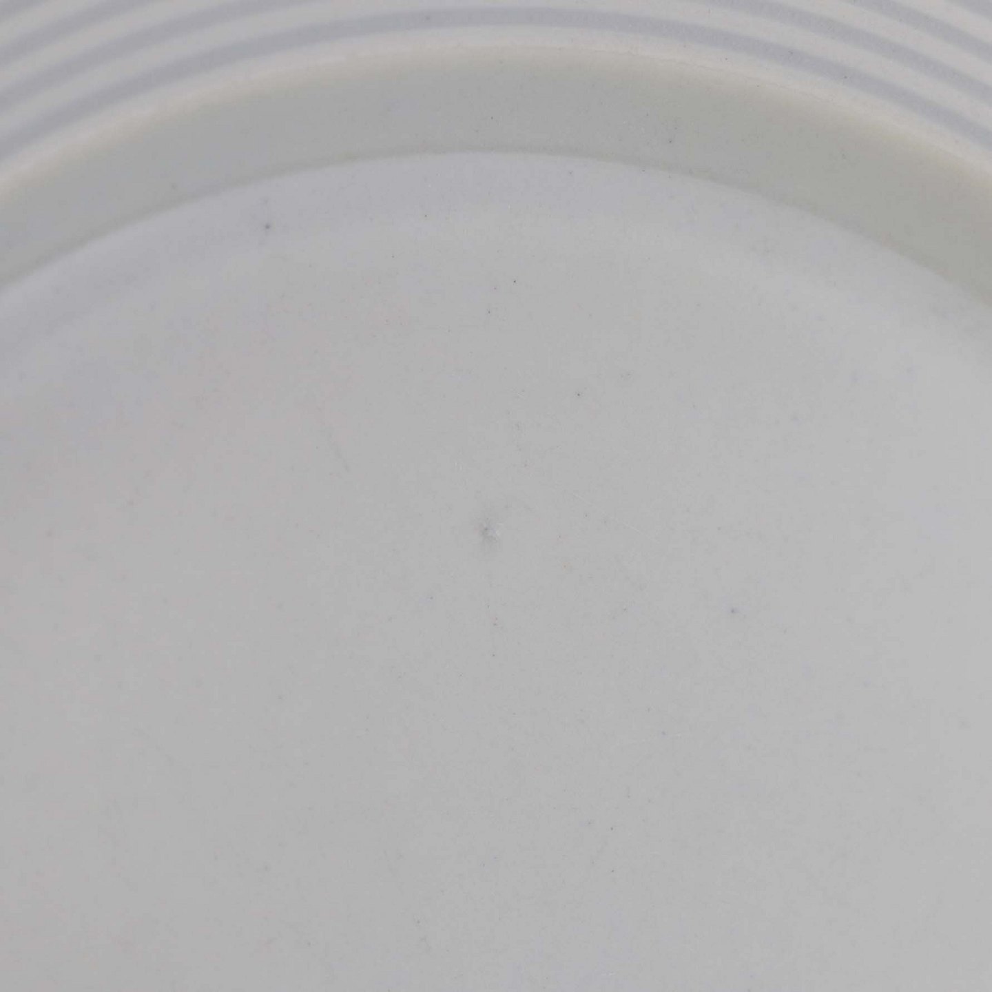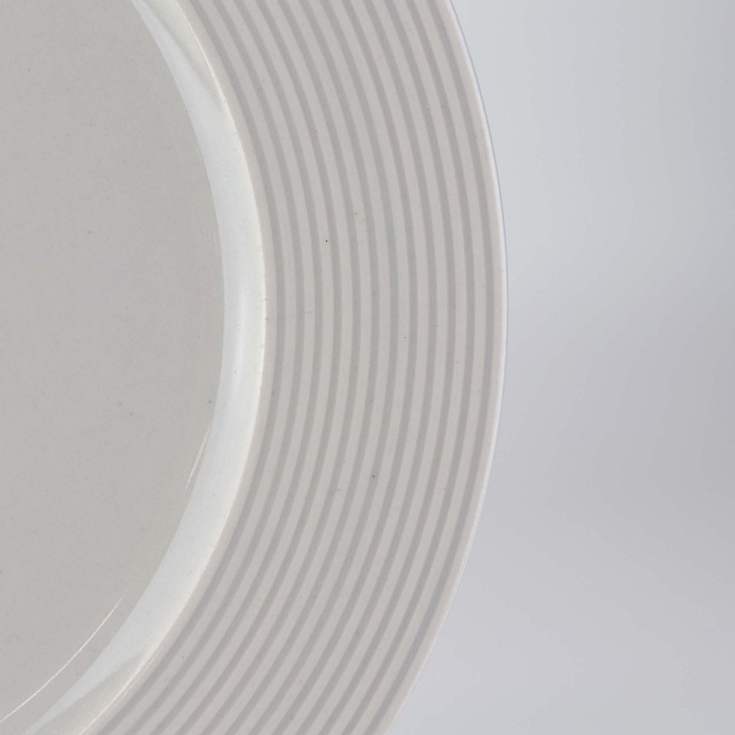 Enkelt stel i stentøj med råhvid glasering og rillet fane.