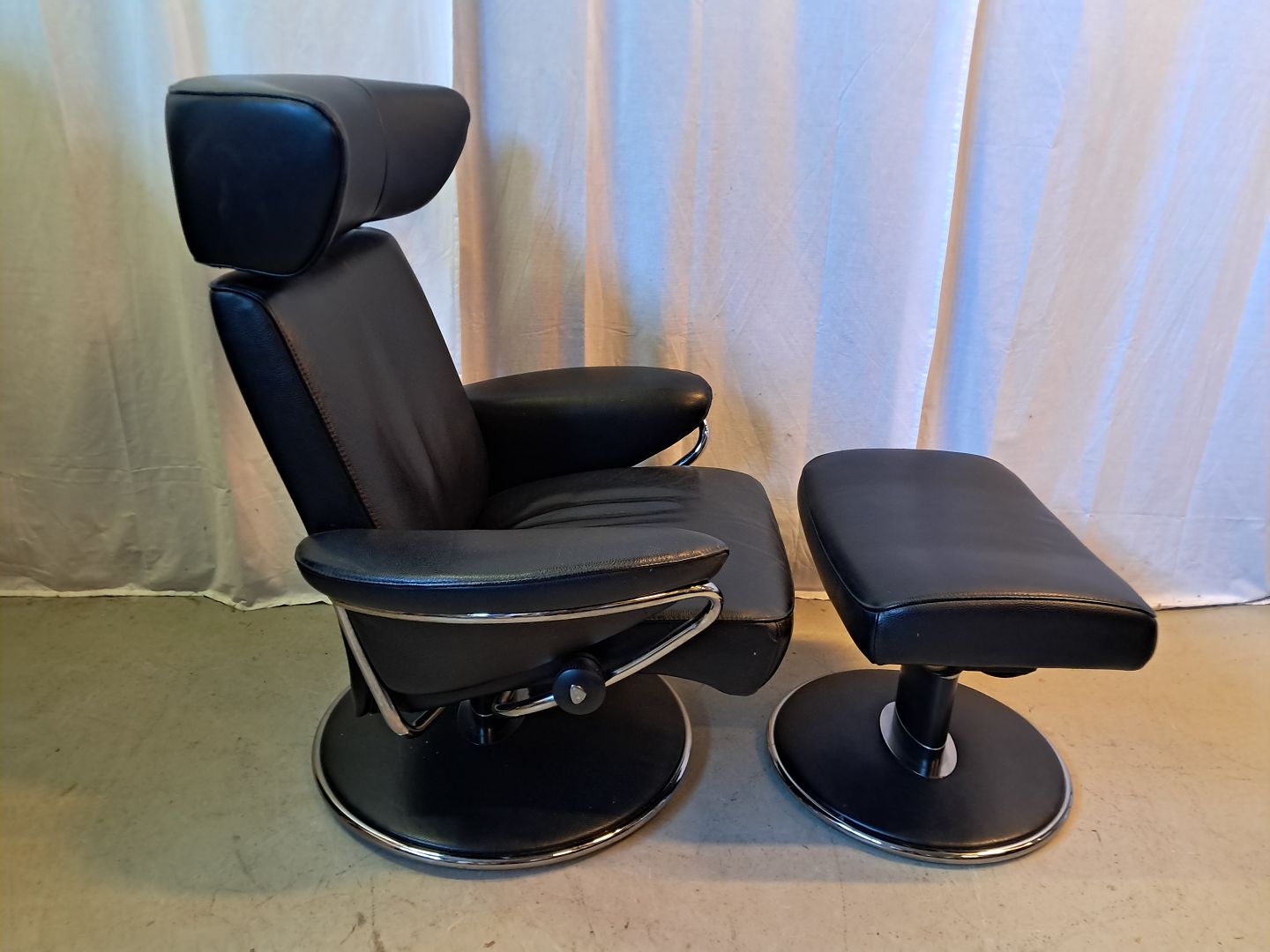 Stressless model Jazz læder lænestol med fodskammel, fra 2010erne.