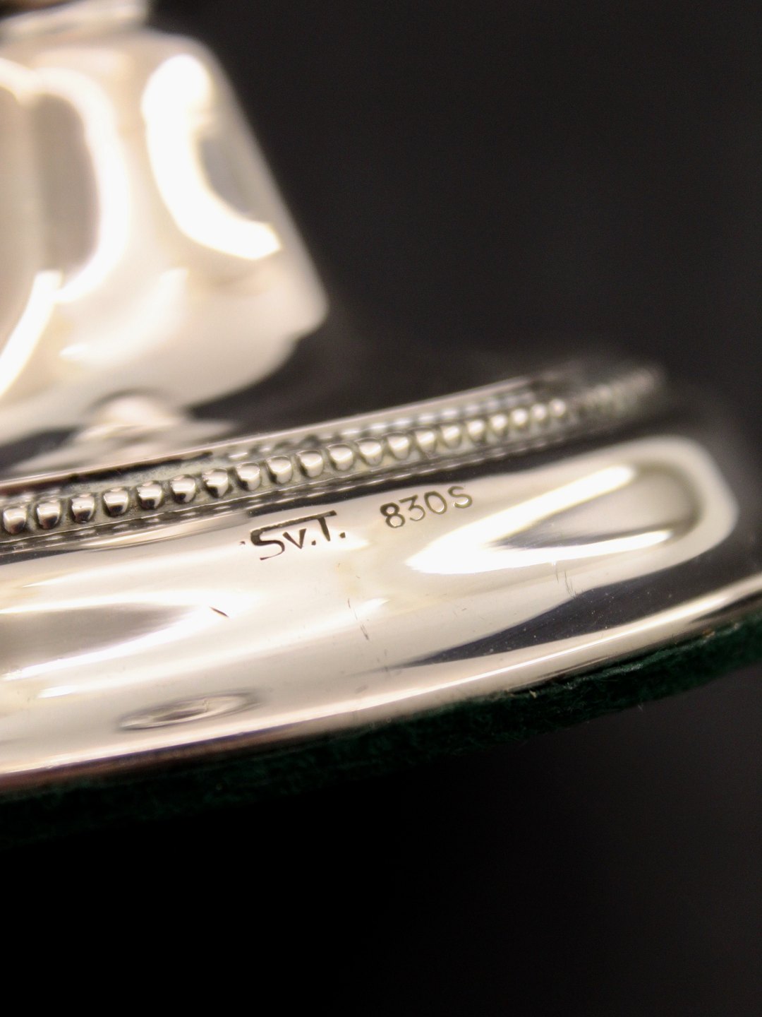 830 sølv lysestager 17,5 cm. fra sølvsmed SV. Toxværd København emne nr. 626479