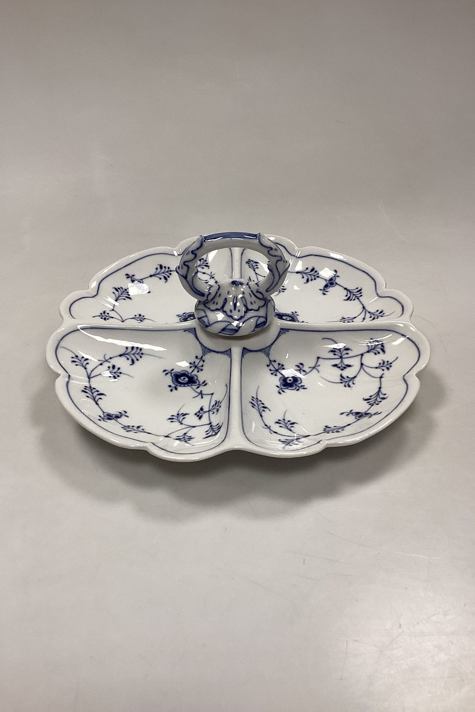 Royal Copenhagen Musselmalet Riflet Kabaretfad No. 396. Fire ruminddelinger og hank. 1. Sortering.