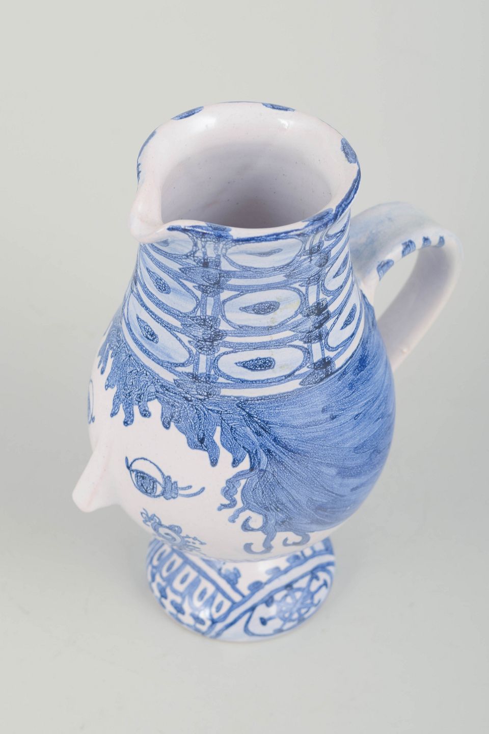 Håndlavet keramisk figur i form af en kvinde med kande, rigt dekoreret i klassisk Wiinblad-stil med detaljeret bemaling og karakteristisk udtryk.