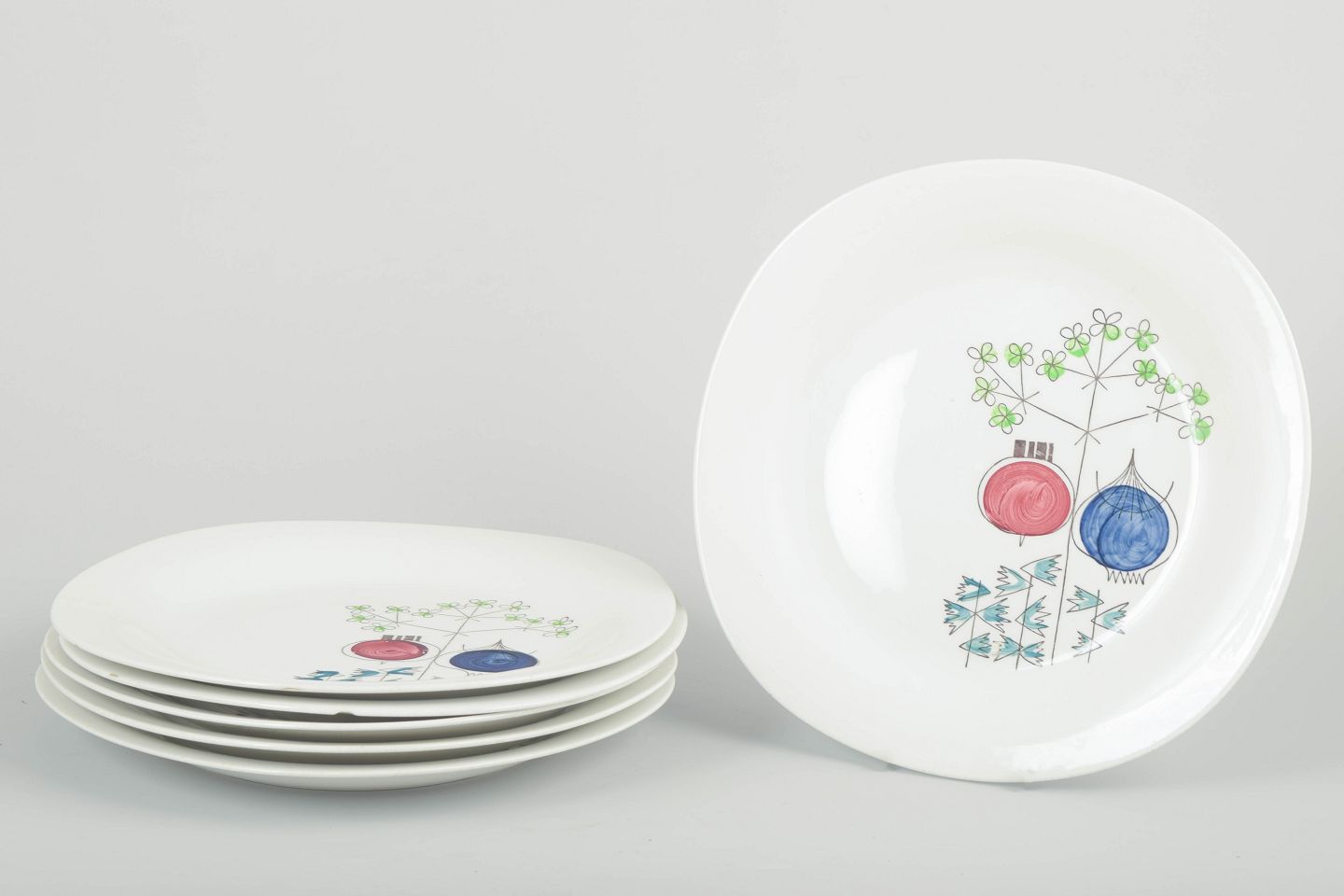 Seks tallerkener, “Pomona” serien, midt 1900-tallet.