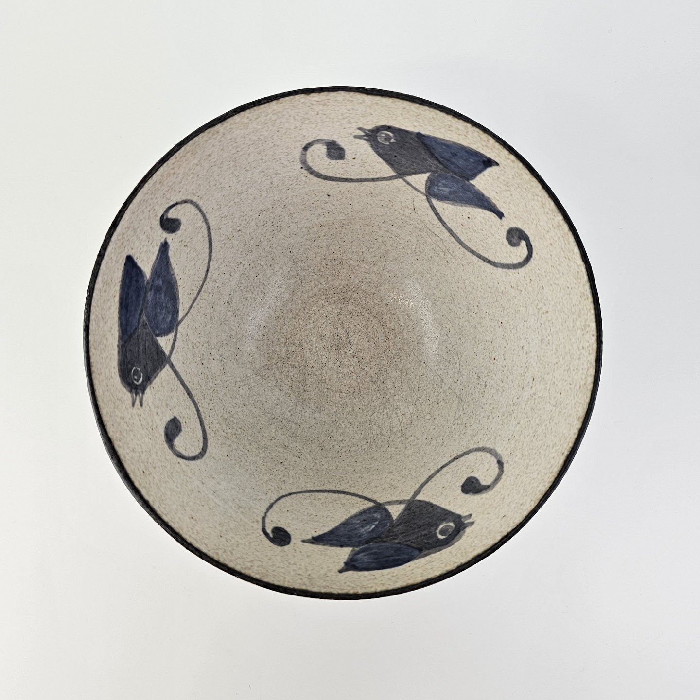 Skål i keramik med motiv af blå fugle