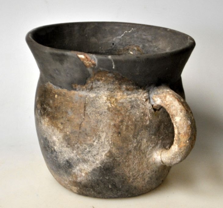 Dansk jordfund. Lerkar. Keltisk jernalder, Danmark. Med reparationer. H.: 10,5 cm.