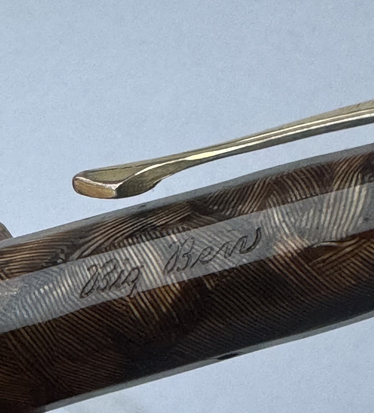 Mindre 12-kantet Big Ben fyldepen med piston filler. Blæk-påfyldnings systemet skal repareres så pennen igen kan optage blæk og skrive igen. Ellers i god stand uden skader. Big Ben indgraveret på den ene side af hætten. På den anden side står der 1920 1.12 1940. Længde: 11,7 cm