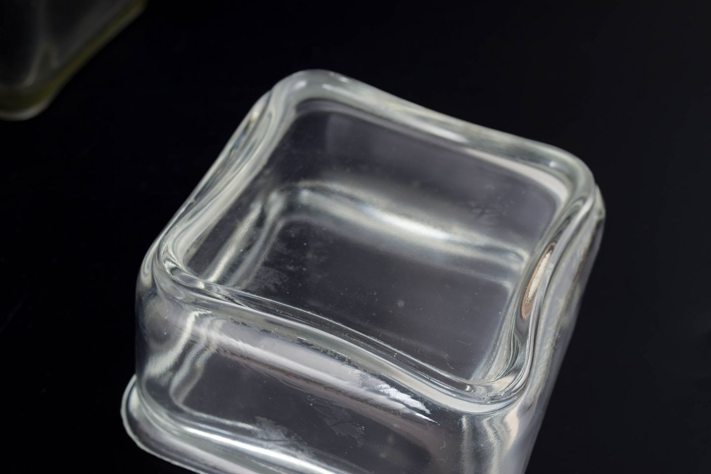 Sæt på tre Wilhelm Wagenfeld “Kubus” glasbokse.
