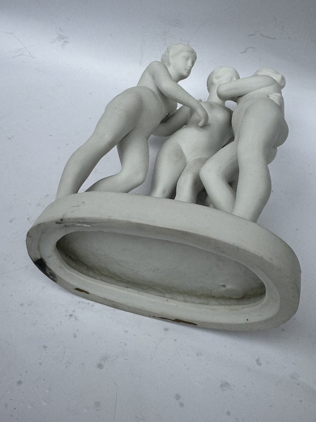 Design Bertel Thorvaldsen: De tre gratier i Bisquit porcelæn. I god stand. Ikke fabriksmærket. Formodes den er fremstillet på ukendt tysk fabrik. H. 18,3 cm