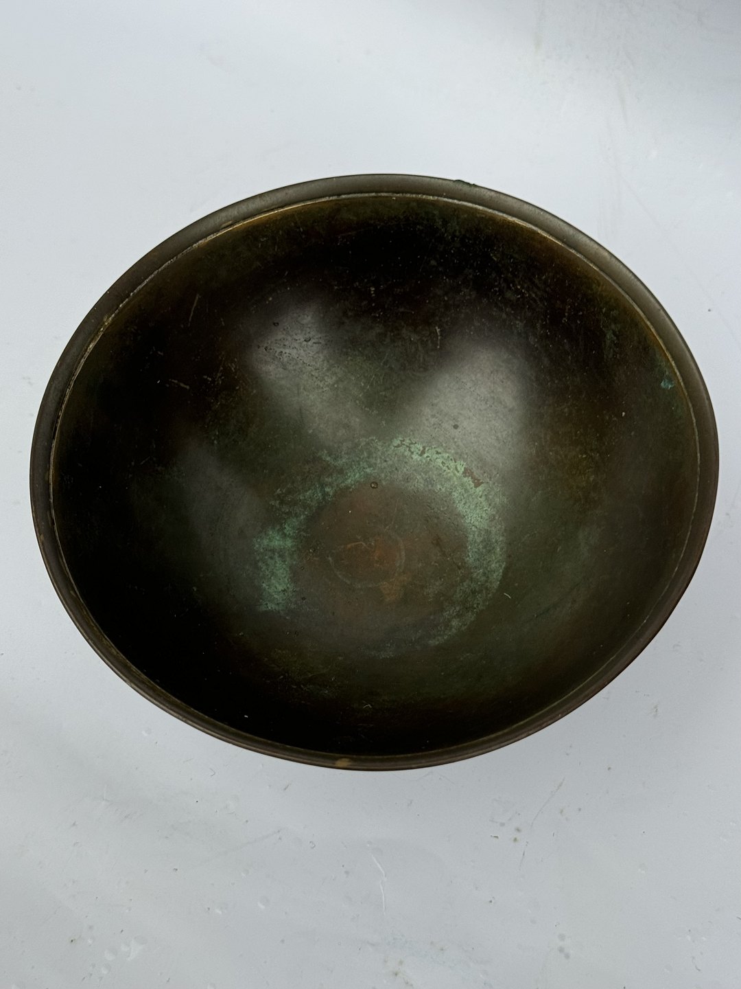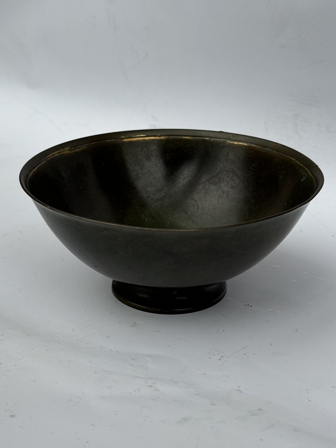 Just Andersen Let Bronze (LB). bronzepatineret skål på fod. Fremstillet på fabrikken omkring 1940. I god stand med få brugsspor. Fabriksmærket på bunden med det velkendte logo samt modelnummer LB 1337. Mål: H. 6 cm