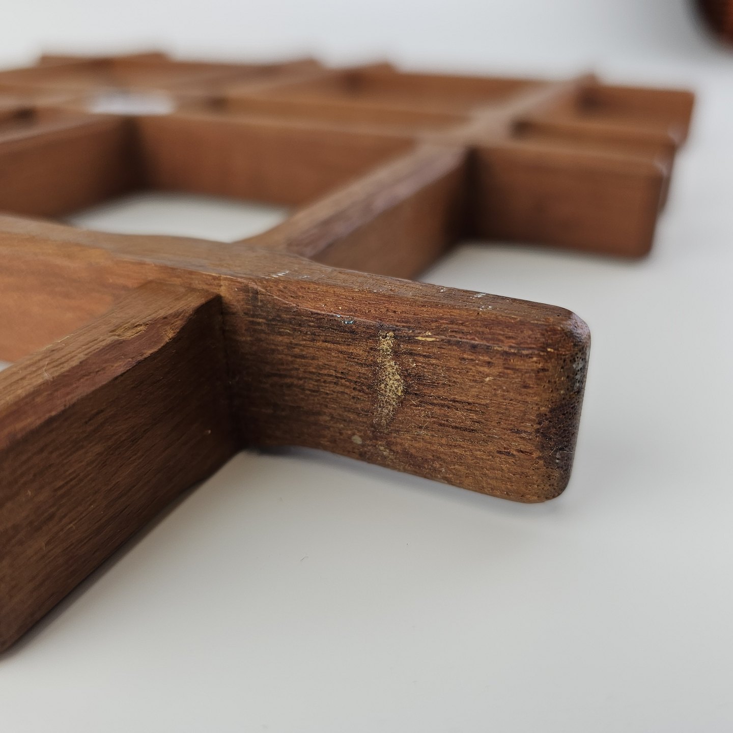 Fremstår med diverse små mærker og skrammer på træets overflade