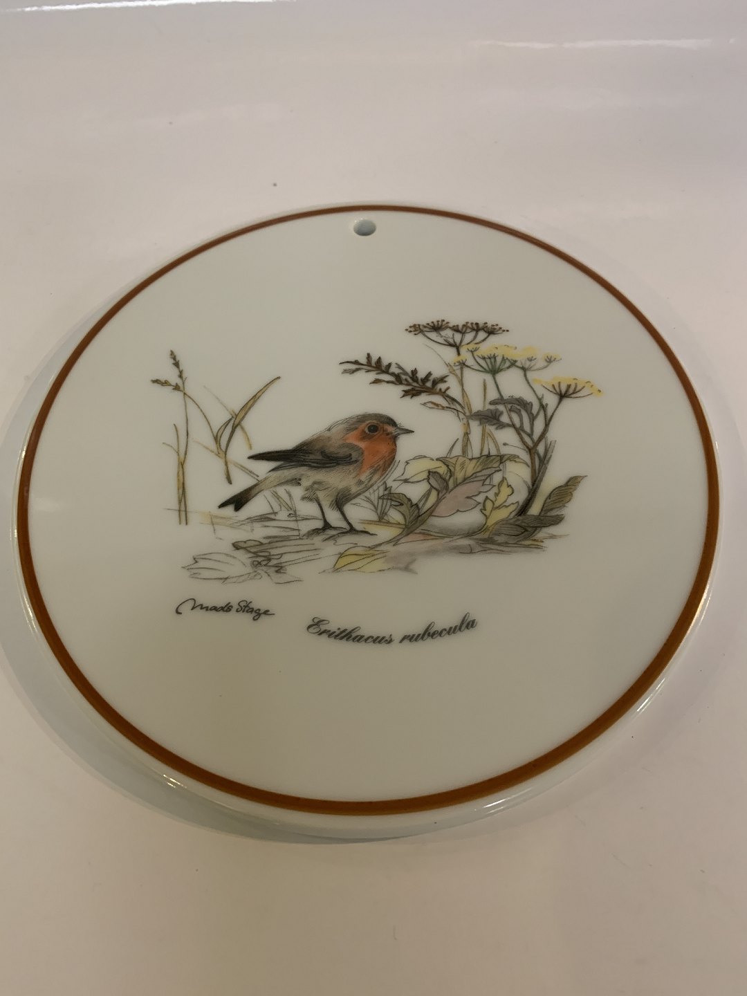 Jagtstellet Mads Stage Smørebrik / Platte, (Erithacus rubecula) Rødkælk