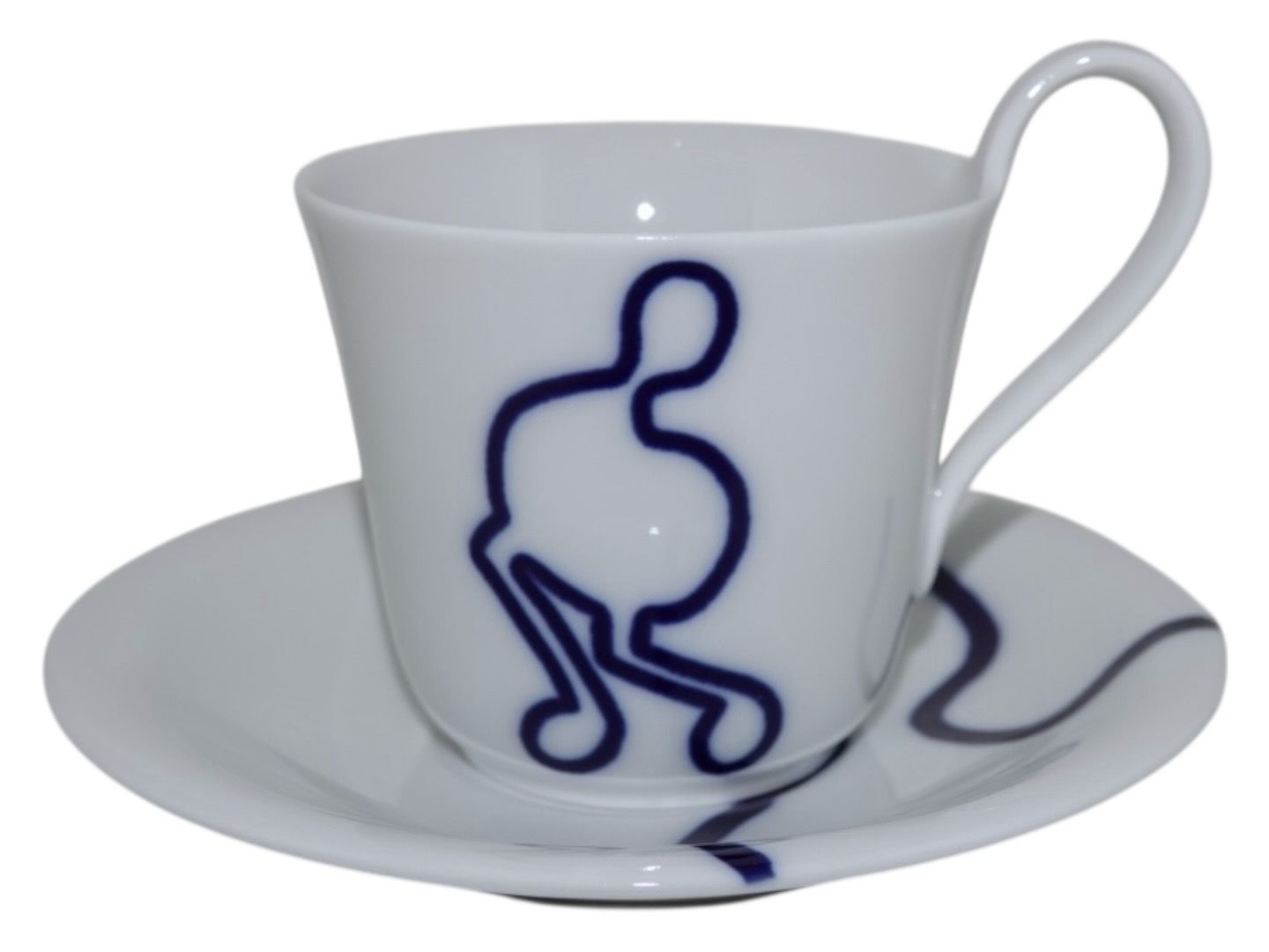 Royal Copenhagen Musica, højhankskop med tilhørende underkop. Dekoration B.