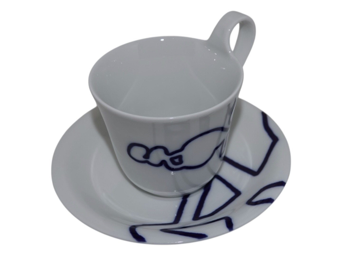 Royal Copenhagen Musica, højhankskop med tilhørende underkop. Dekoration D.