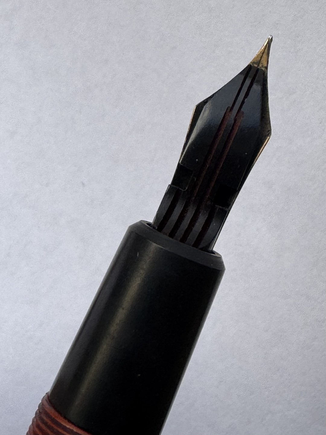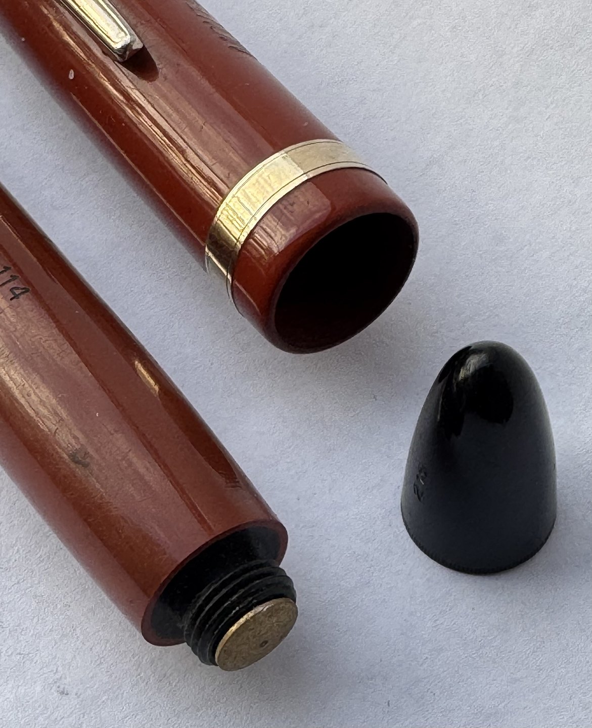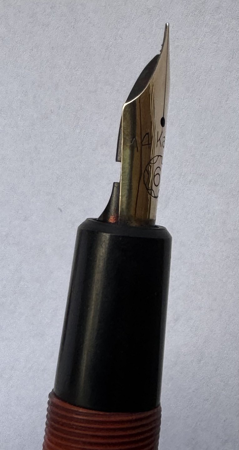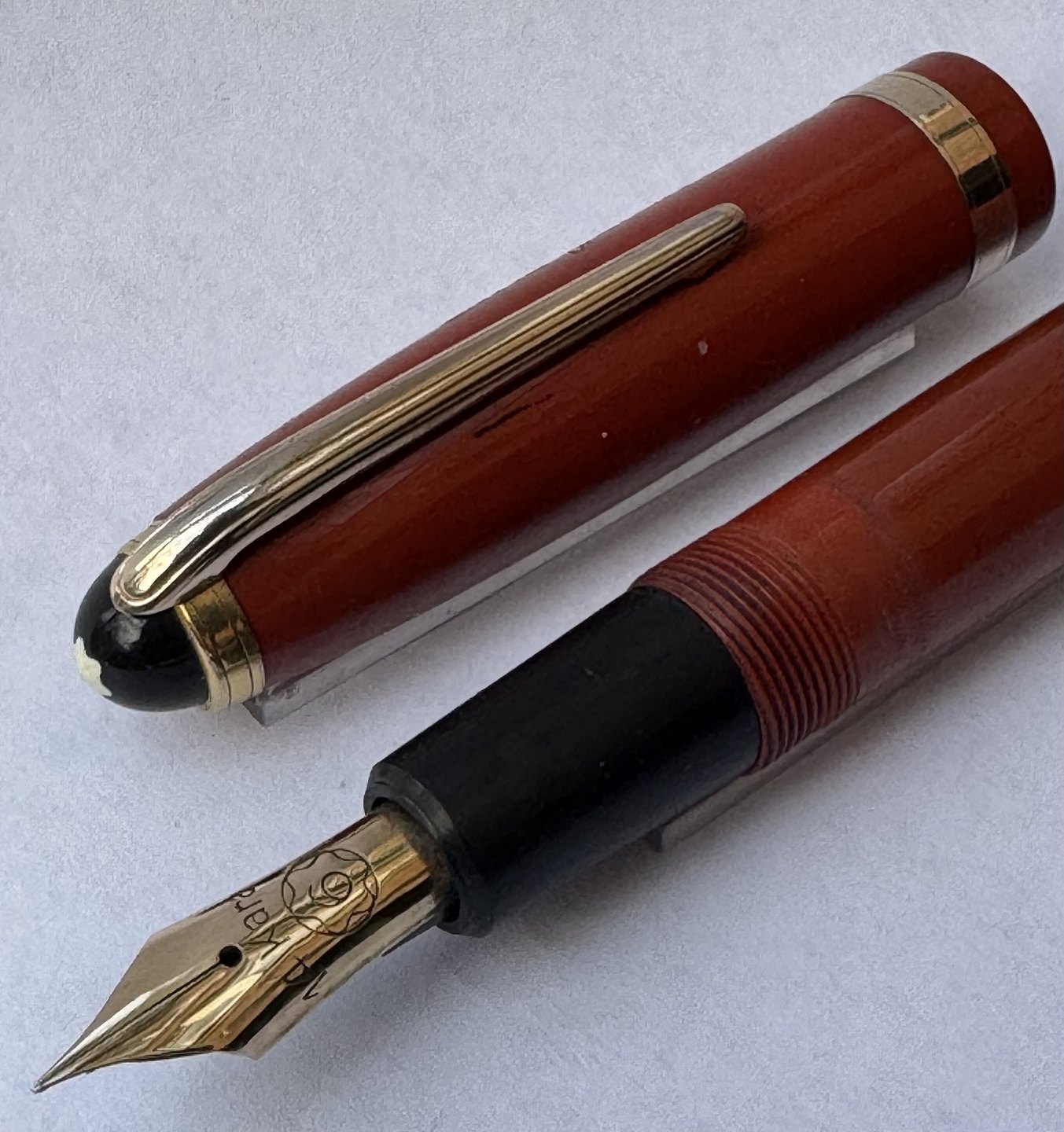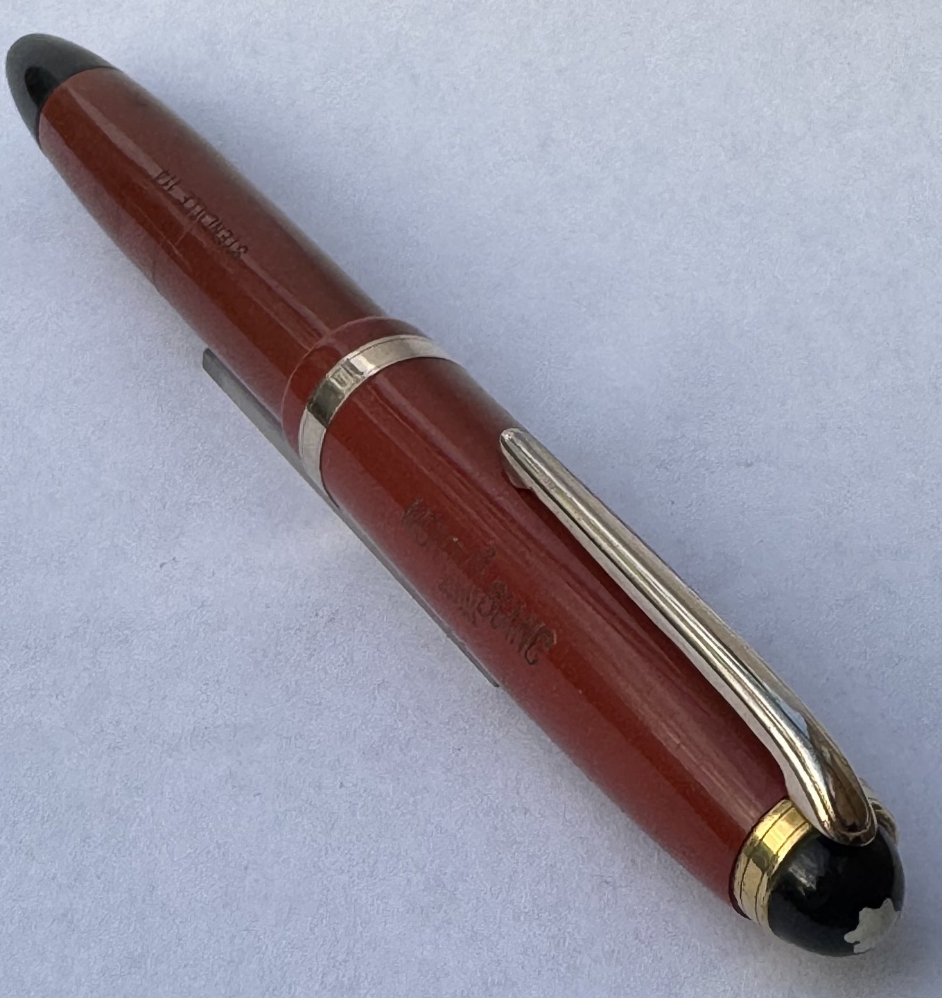 Koral rød Montblanc nr. 216 fyldepen. Push button filler. Fremstillet I Tyskland i 1950’erne. Fremstår I god stand uden skader eller reparationer. Alle dele originale Montblanc fra produktionsperioden med bl.a flot nr. 6 spids i 14 karat guld. Indgraveret STENLILLE 114 på siden af pennen. L.13,8 cm
