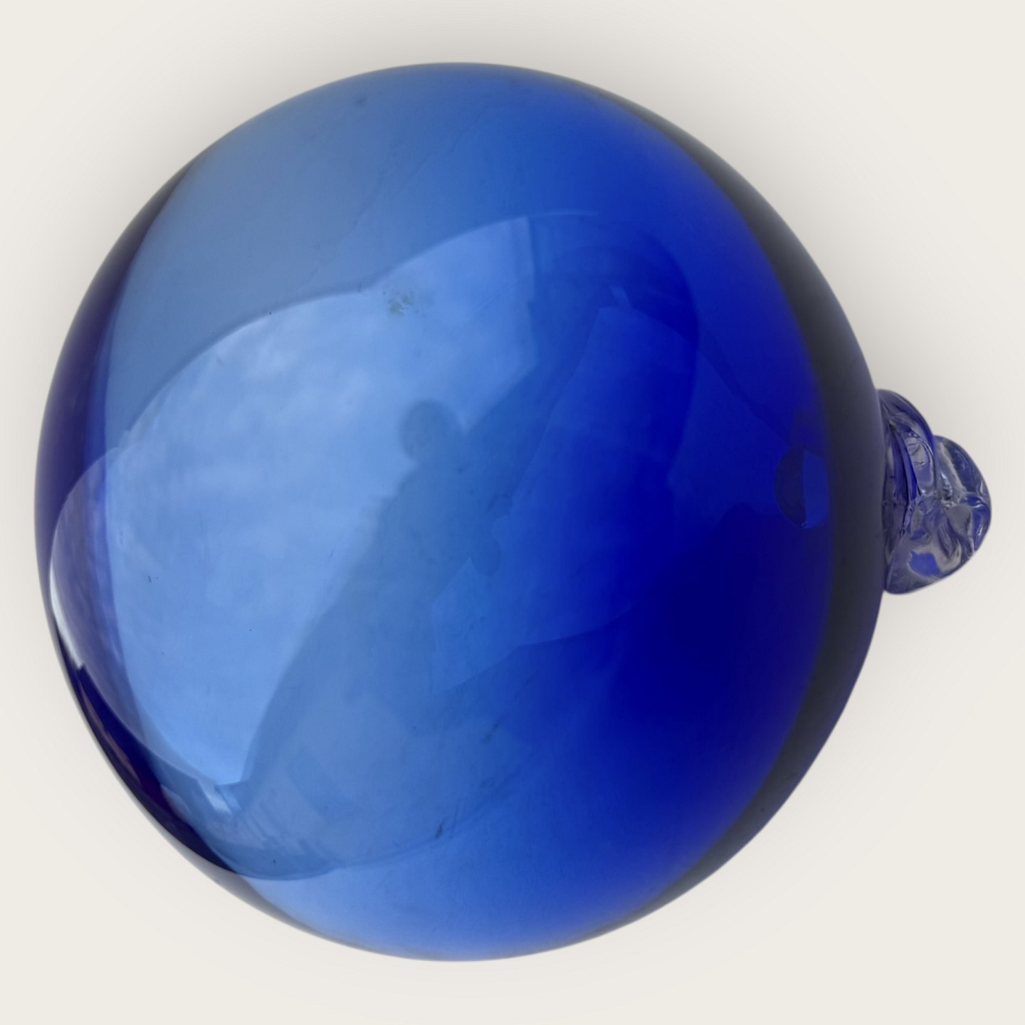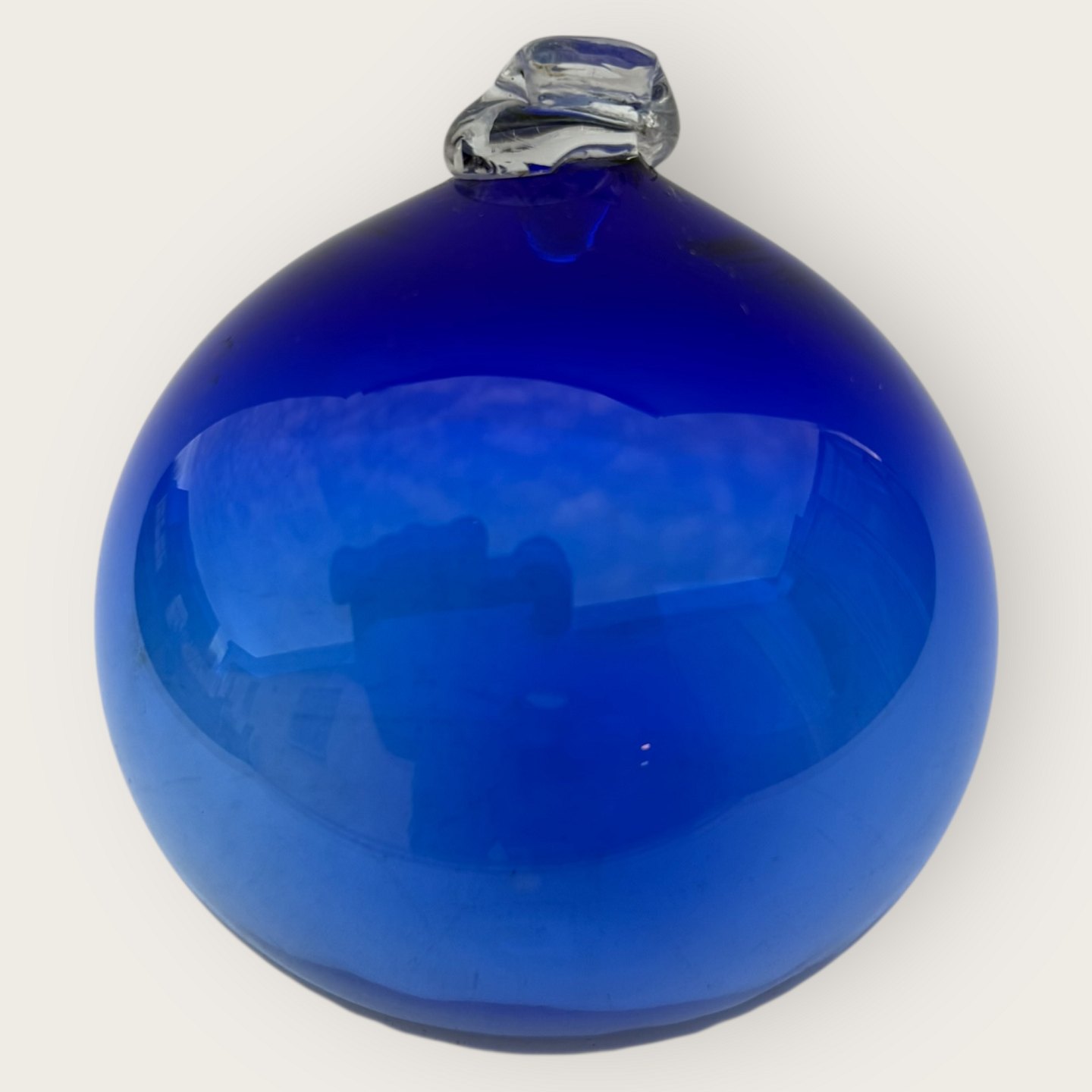 Blå glas kugle til ophæng eller til brug sammen med Carnaby / Otto Bauer vaser, muligvis fremstillet på Holmegaard, Ca. 11 cm i diameter *Pæn brugt stand*