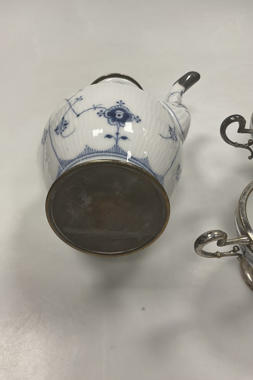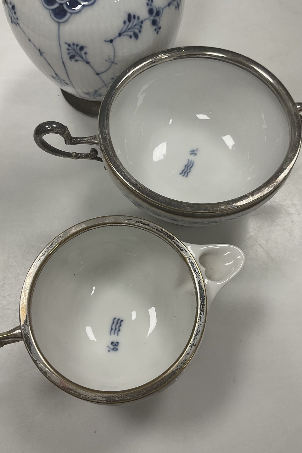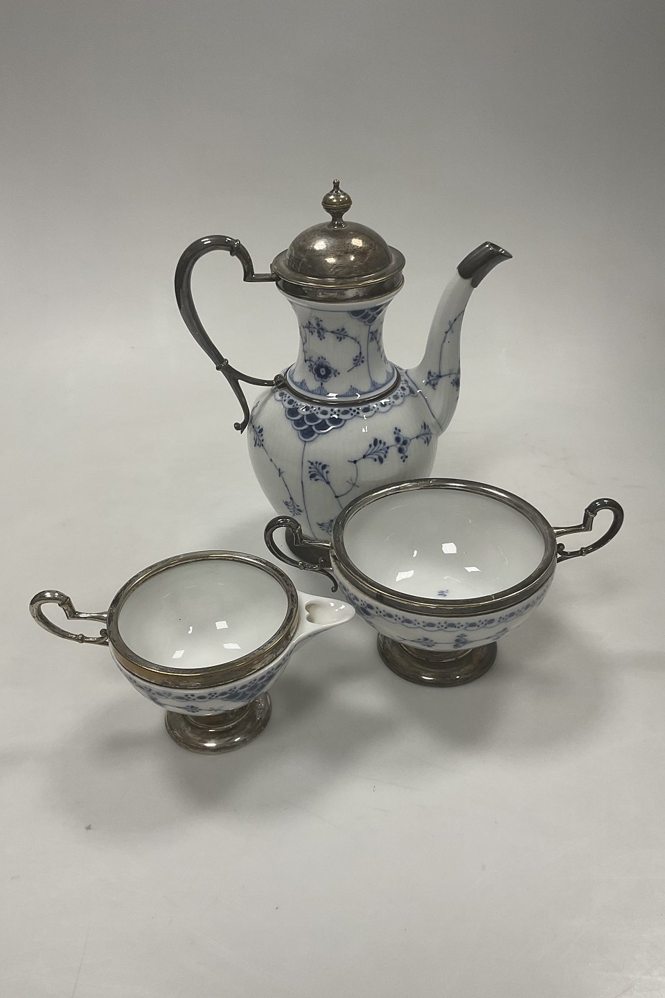 Royal Copenhagen Half Lace Coffee Pot, Creamer and Sugar Bowl with metal mounting