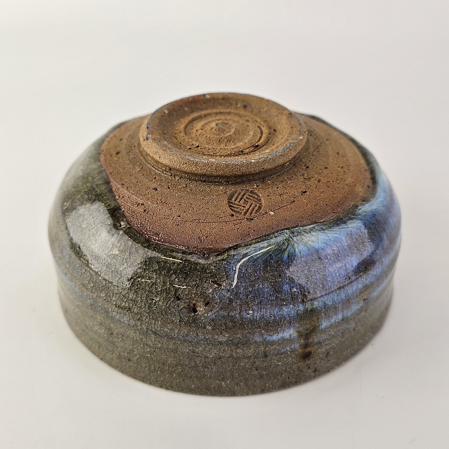 Lille skål med Grønblå glasur med krakeleringer