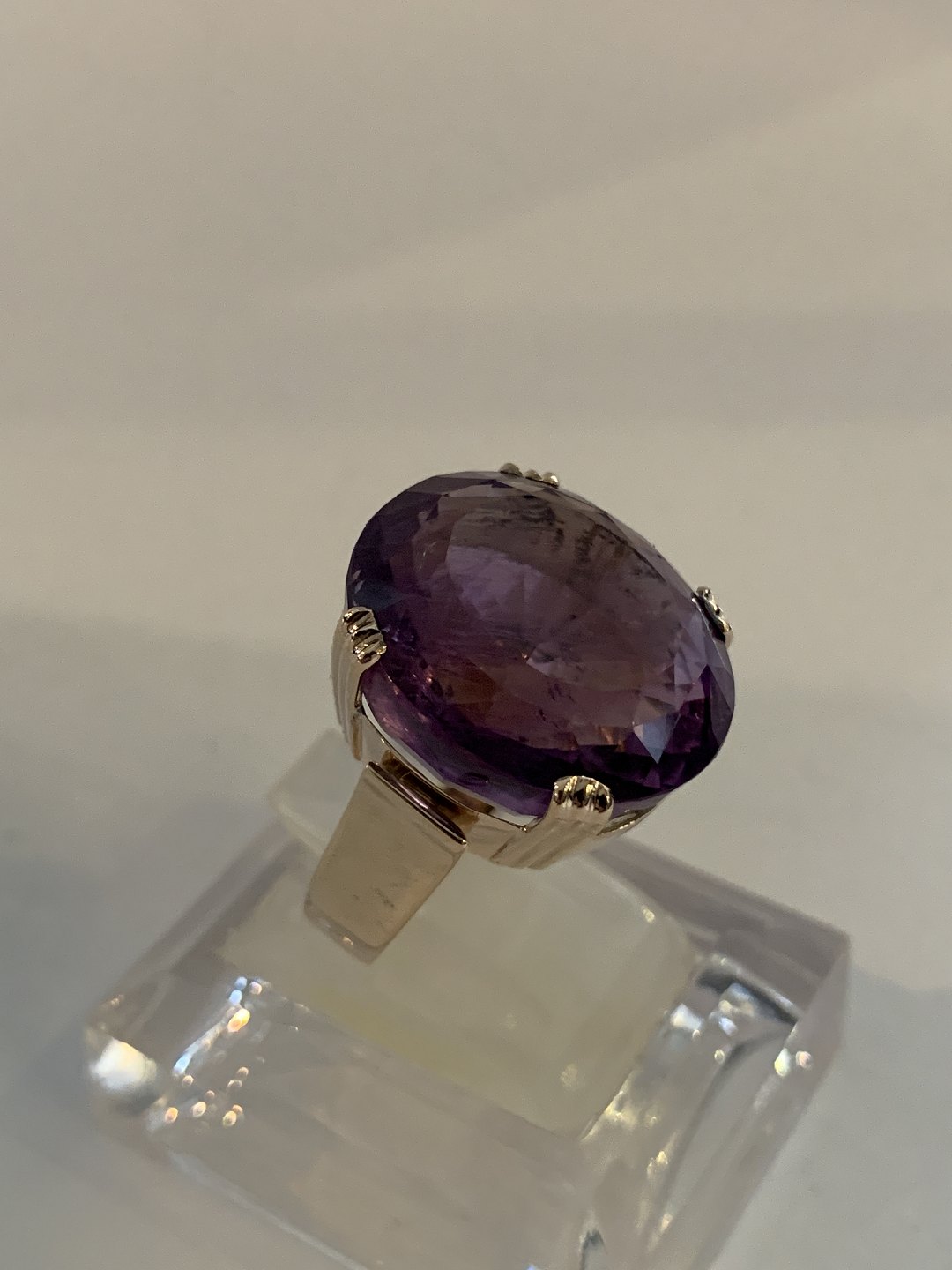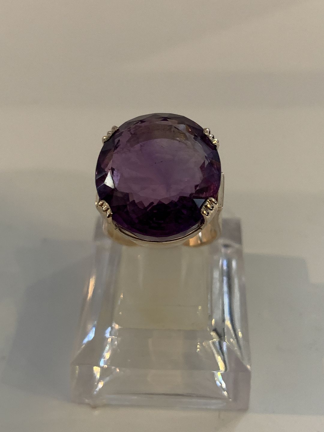 Vintage Ladies Ring with a Large Amethyst 12 Karat Gold