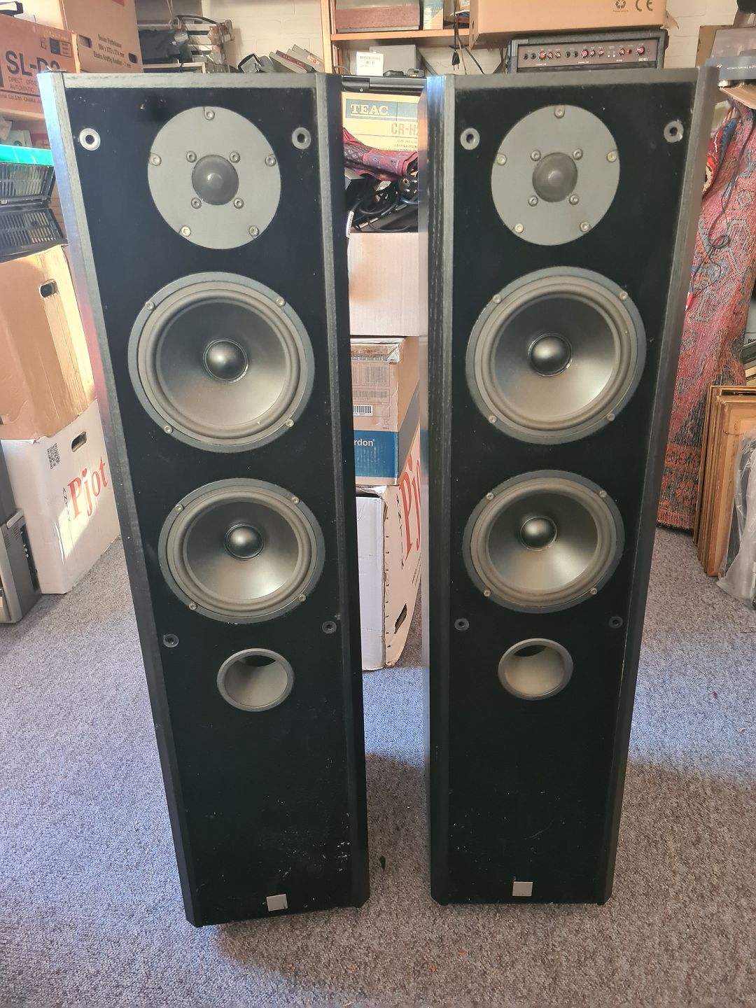 Højtalerpar fra DALI model 400. Testet og lyder fint. Fremstår dog med lidt skrammer på kabinetterne. (Billede)