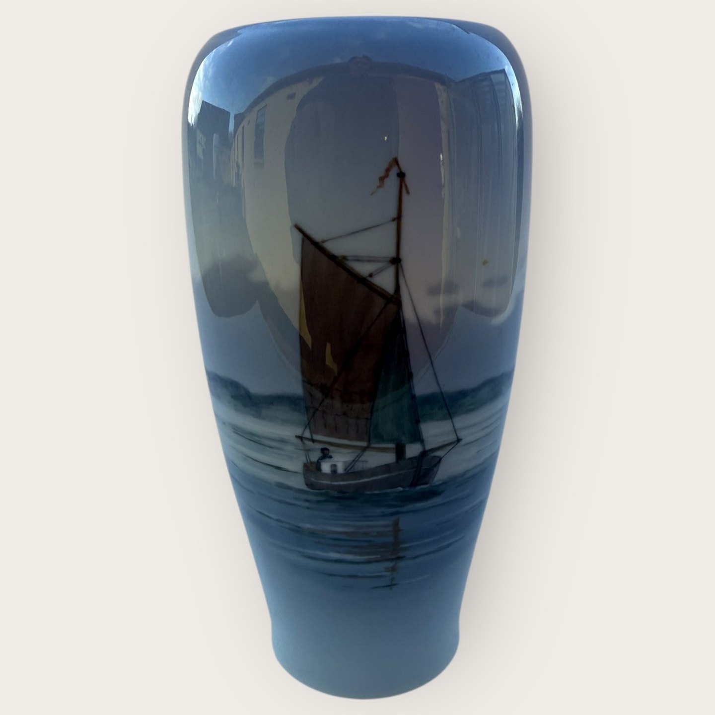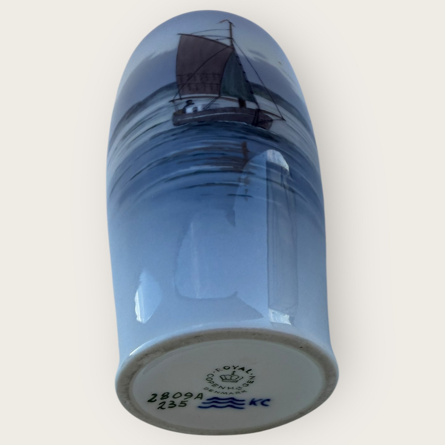 Royal Copenhagen, Vase med fiskekutter med sejl #2809A/235, 17cm høj, 1.sortering *Pæn stand*