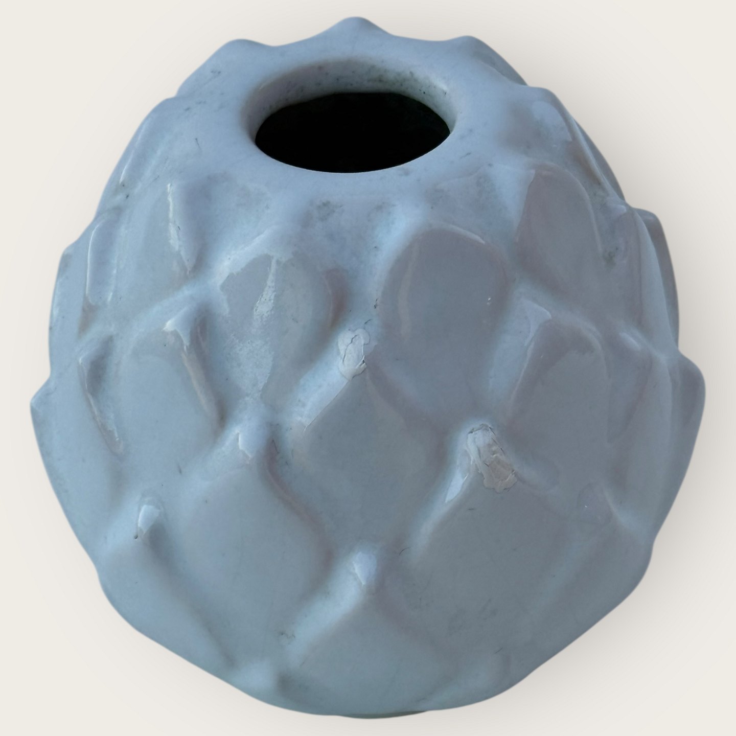 | Bornholmsk keramik, Michael Andersen, Hvid keramikvase, #5103, ca. 8,5cm høj*Fremstår med 2 små afslag/reparationer (se de sidste 2 foto)*