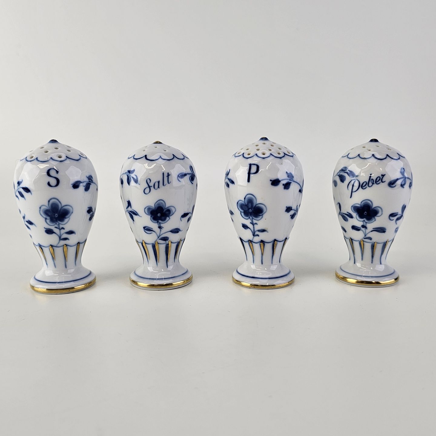 Salt- og peberbøsser i porcelæn fra stellet Kipling i fire varianter uden propper