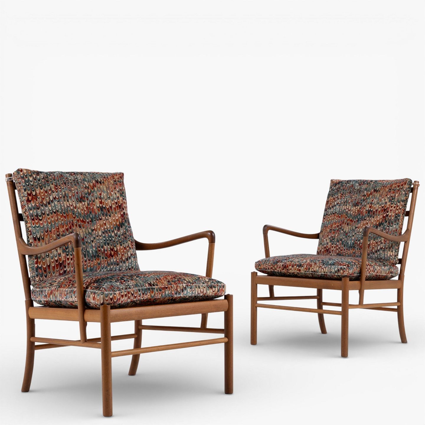PJ 149 - 'Colonial Chair'-lænestol i patineret mahogni med nybetrukkede hynder i 'End Paper Velvet'-tekstil. Mærket fra producent.