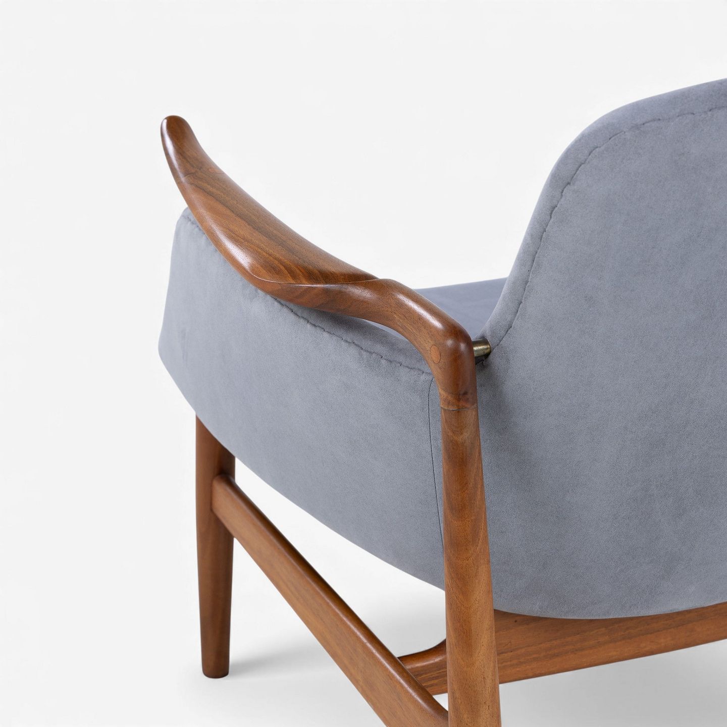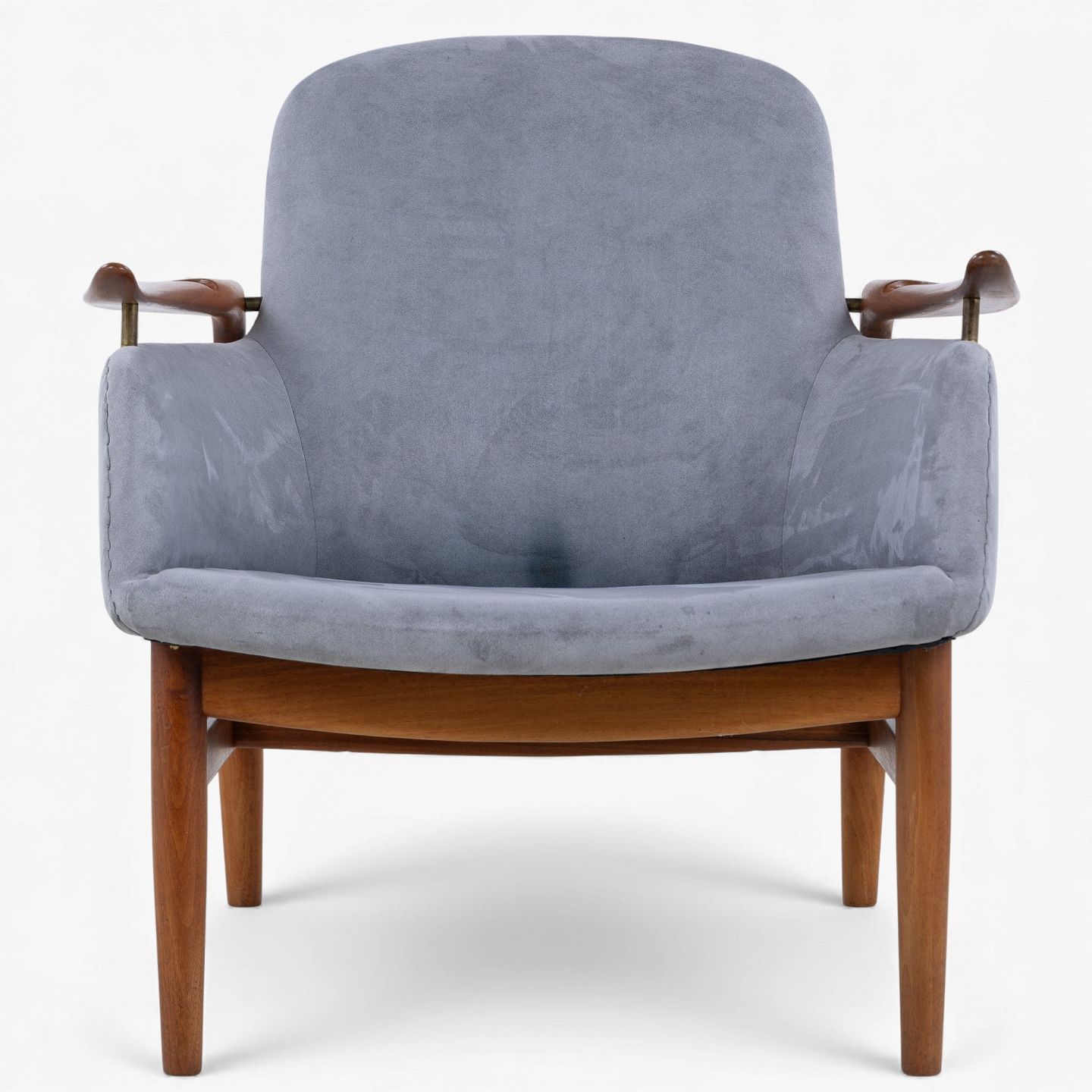 NV 53 - Lænestol i gråt 'Alcantara'-stof med stel i patineret valnød.