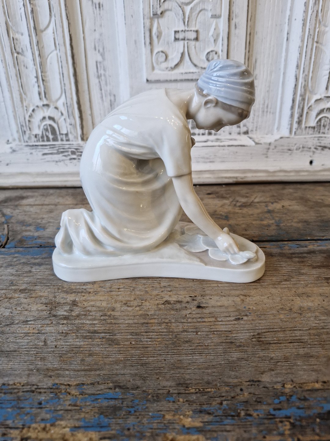 B&G sjælden Art Nouveau figur - Pige der plukker åkander no. 1685 - OBS fremstår med skade
