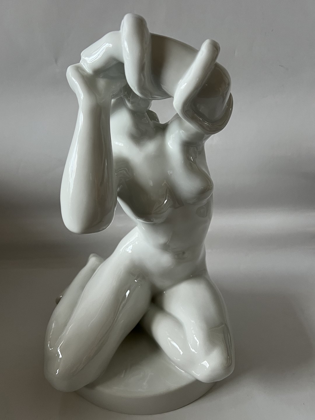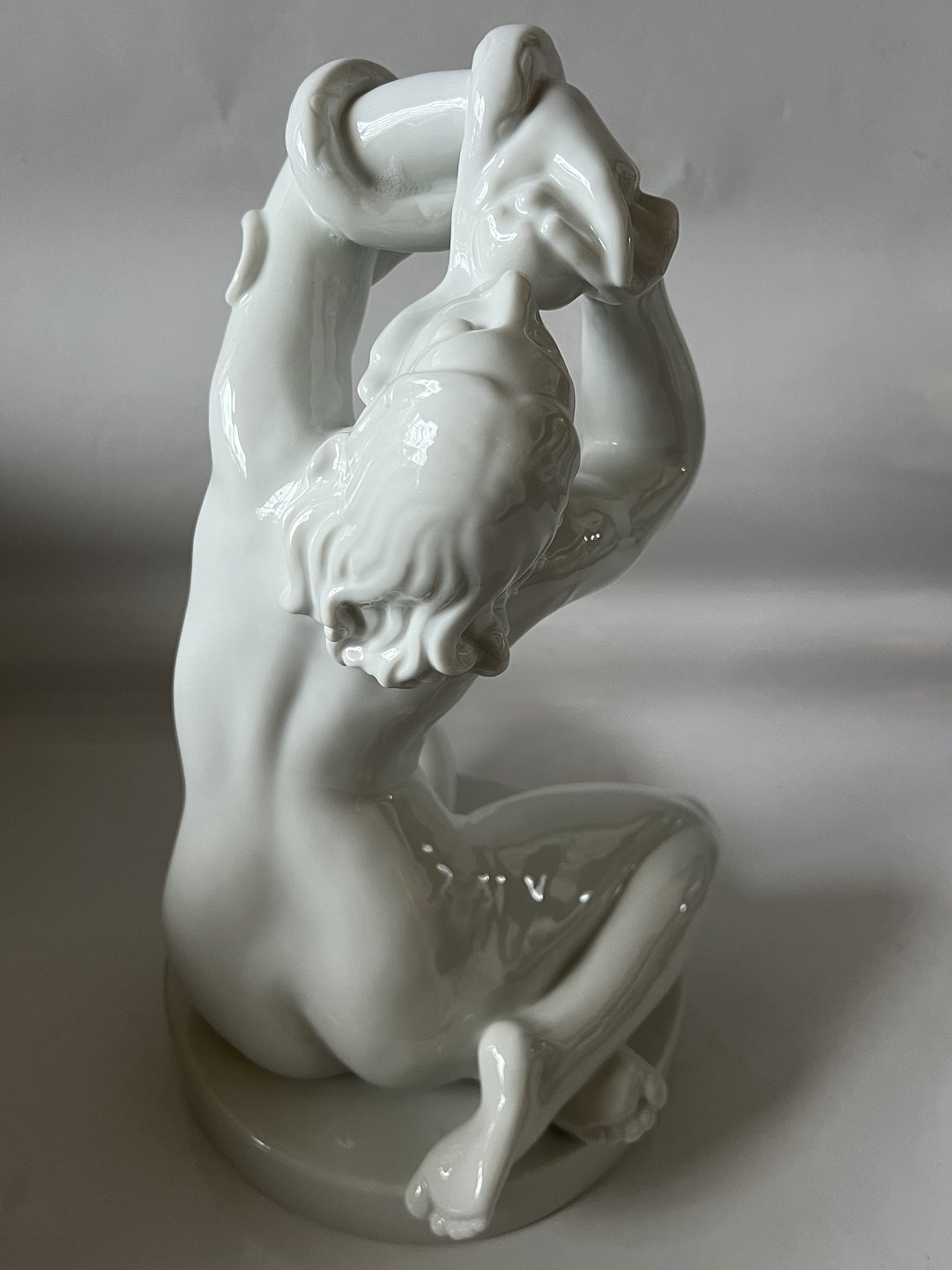Dahl Jensen Elegant og dynamisk porcelænsfigur, med motiv af Eva med slangen. Figuren har mange flotte detaljer, og fremstår minimalistisk i stilen. Den ensfarvede hvide farve giver figuren en tidløs tilstand, hvor motivet træder frem og skaber liv og dynamik. Figuren er fremstillet med sans for detaljen, og vil være et ideelt samlerobjekt.