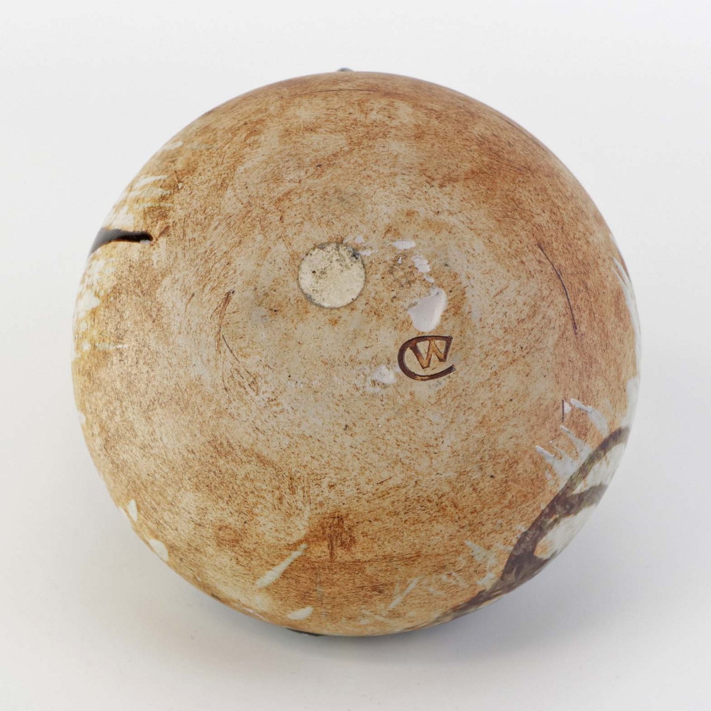 Lav rund vase i keramik. Delvist glaseret med flerfarvet mat og glansfuld glasur.