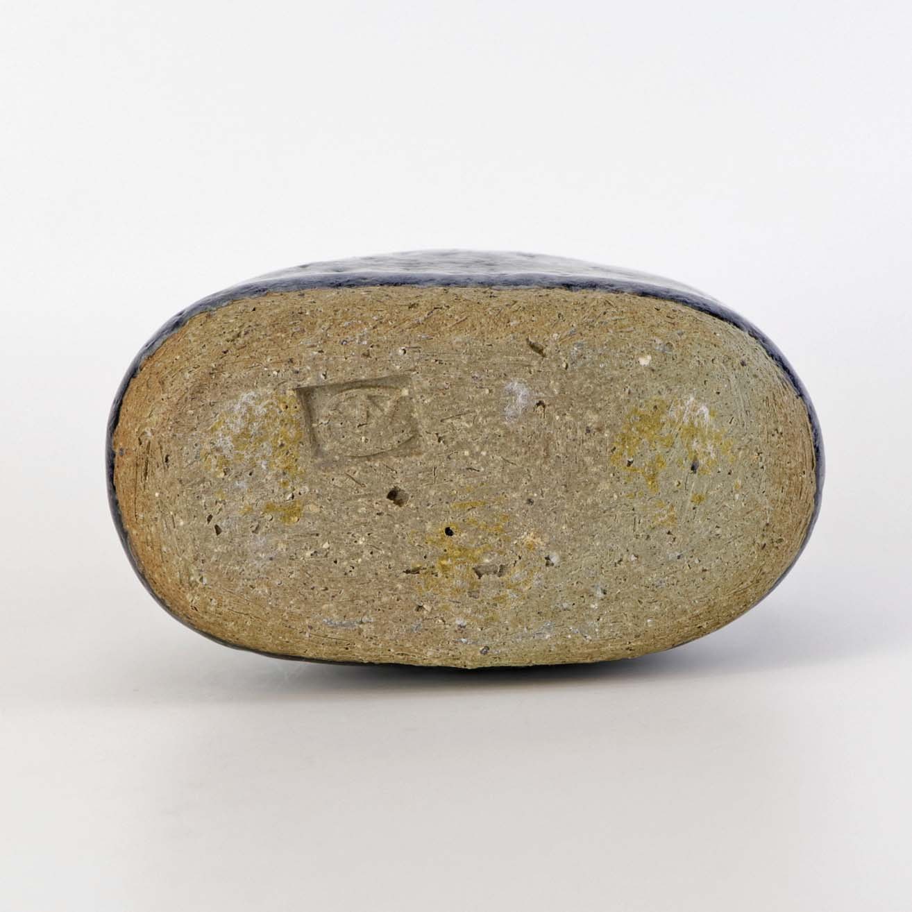 Lille flaskeformet vase i keramik med blommefarvet glasur.